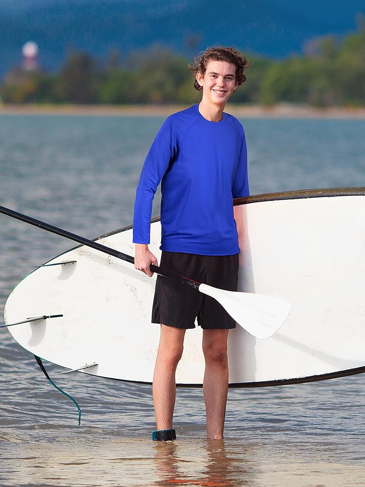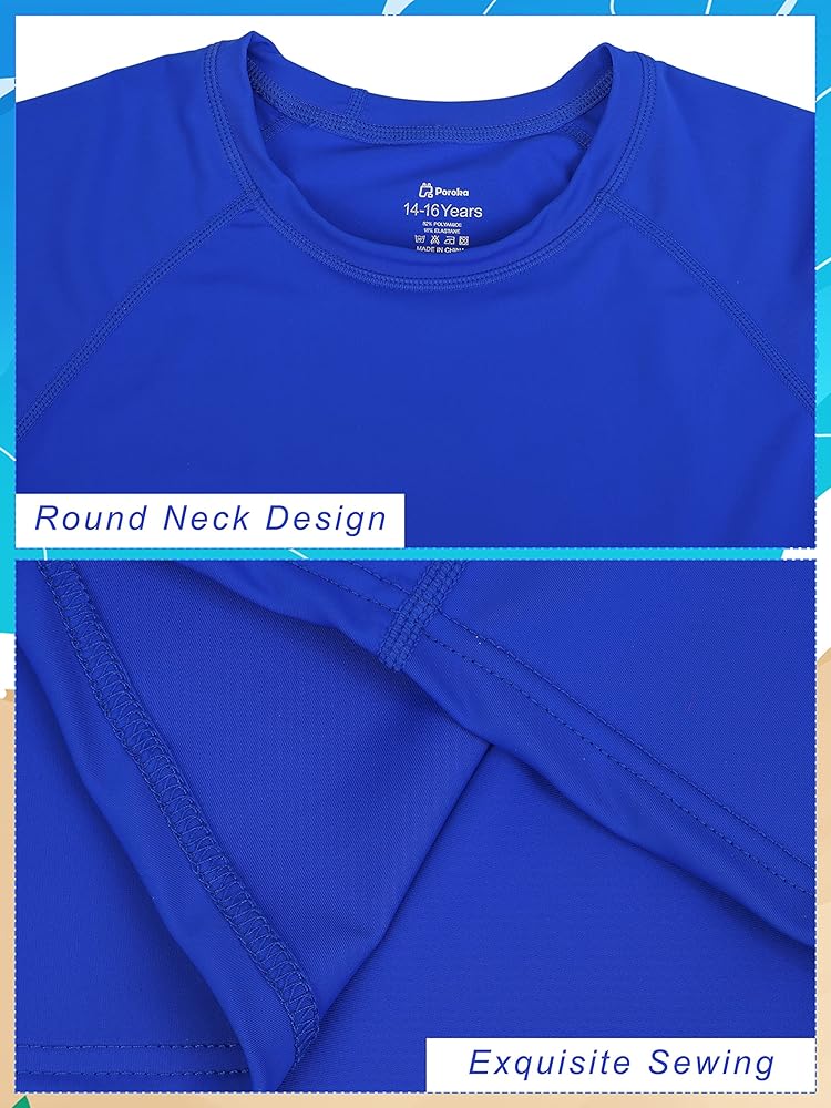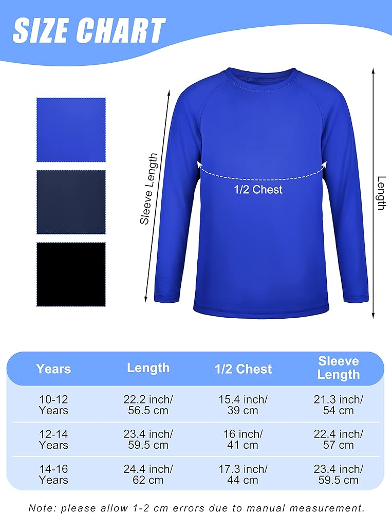 Easy to Clean: our rash guard athletic shirts are easy to maintain; during the first wash, some color may fade, but this is normal; the boys dry-fit shirts can be cleaned using standard methods such as dry cleaning or washing with water, ideal swim shirt for anyone who wants both style and convenience in wardrobe!