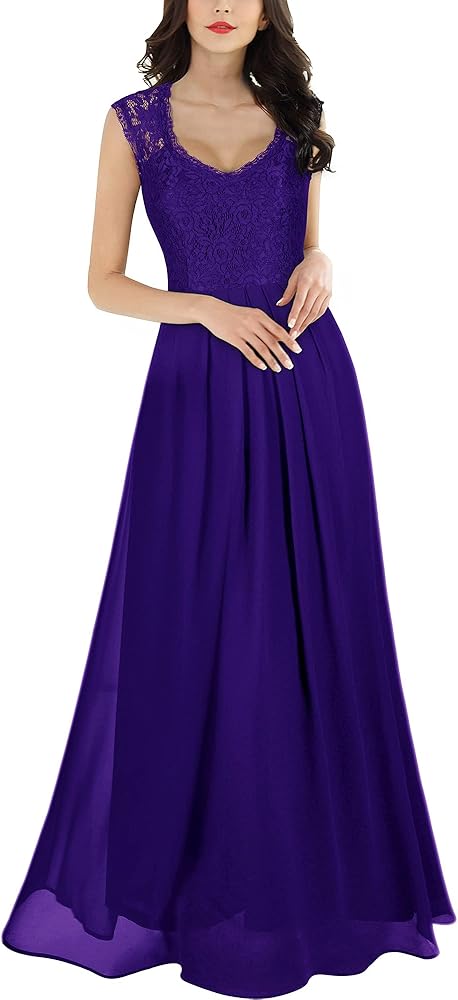 نمط شيفون متباين من الدانتيل، سحاب على الظهر، فستان طويل.