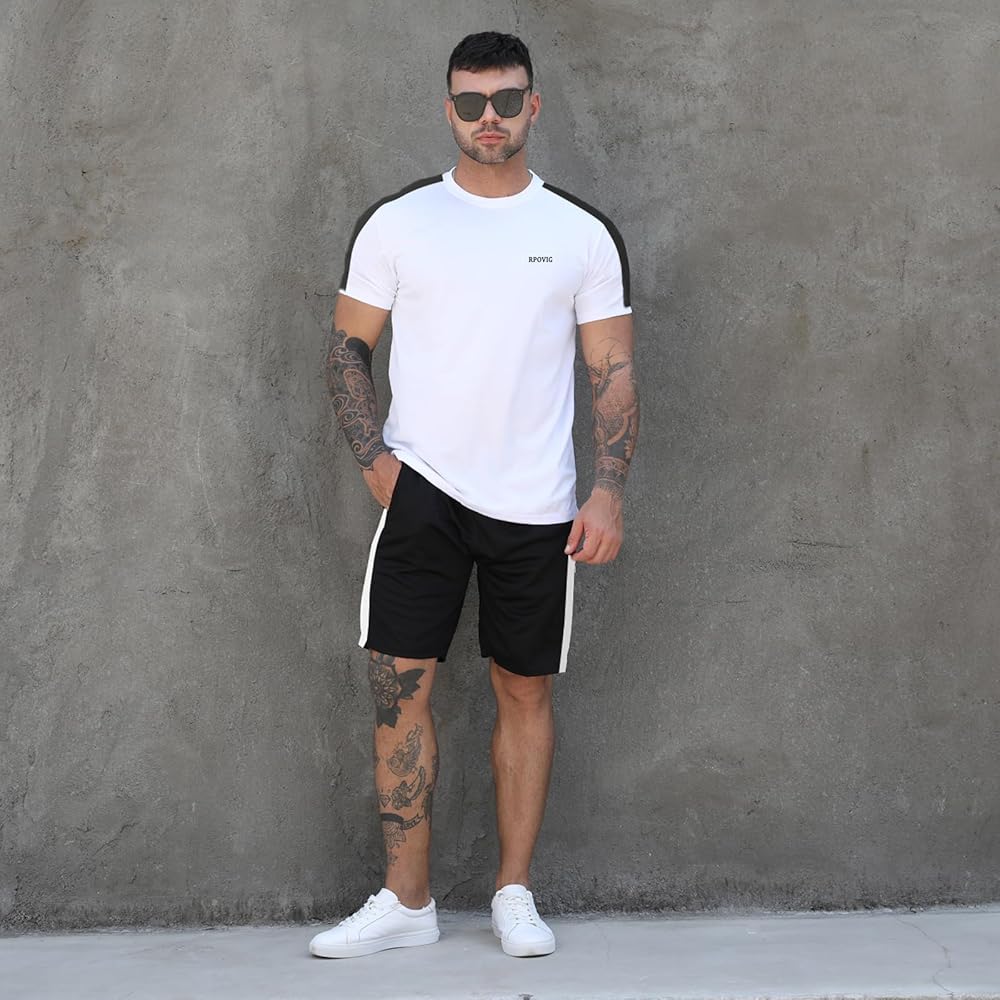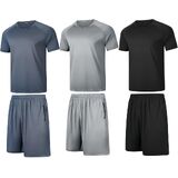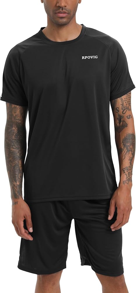 مجموعة قمصان RPOVIG للتمرين: مجموعة من 3 ملابس رجالية ملائمة للجفاف، مجموعة قصيرة من الملابس الرياضية النشطة والأداء الرياضي
