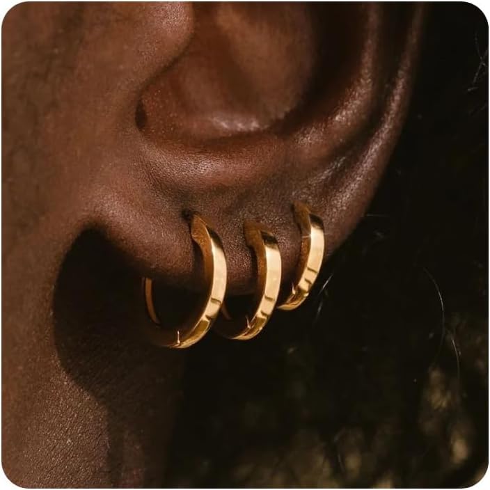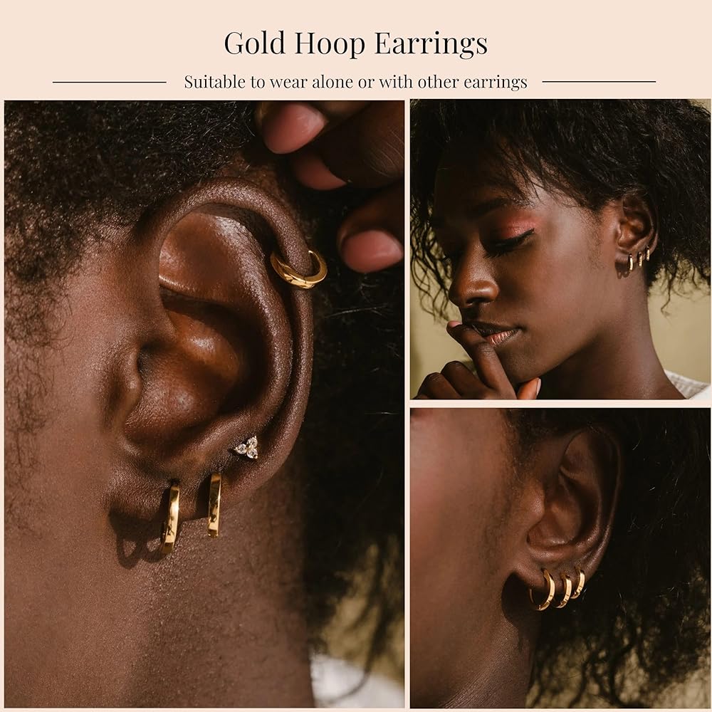 مادة الأطواق الذهبية: حلق ذهبي مكتنز مقاوم للماء مصنوع من مطلي بالذهب عيار 14 قيراط، نحن نستخدم فقط معادن عالية الجودة مما يعني أن قطعنا لا تسبب الحساسية بنسبة 100%. لا يحتاج الأشخاص الذين يعانون من الحساسية إلى القلق بشأن ظهور رد فعل تحسسي.