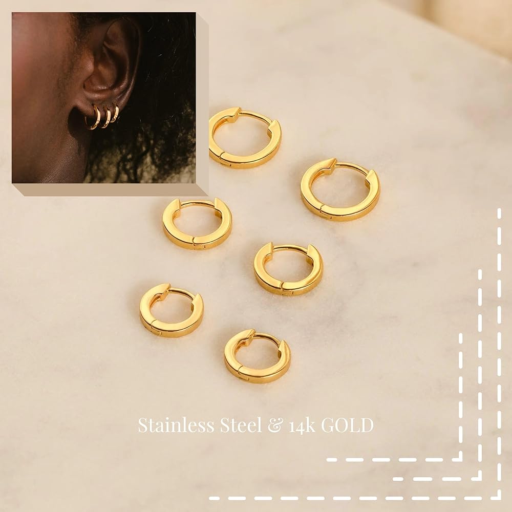 خفيفة الوزن ولطيفة: مجموعة أقراط ذهبية بوزن أقل من 0.1 أونصة، أثقل قليلاً من سنت واحد. يمكن ارتداؤه طوال اليوم، دون أي ضغط، ومن السهل جدًا ارتداؤه وخلعه.