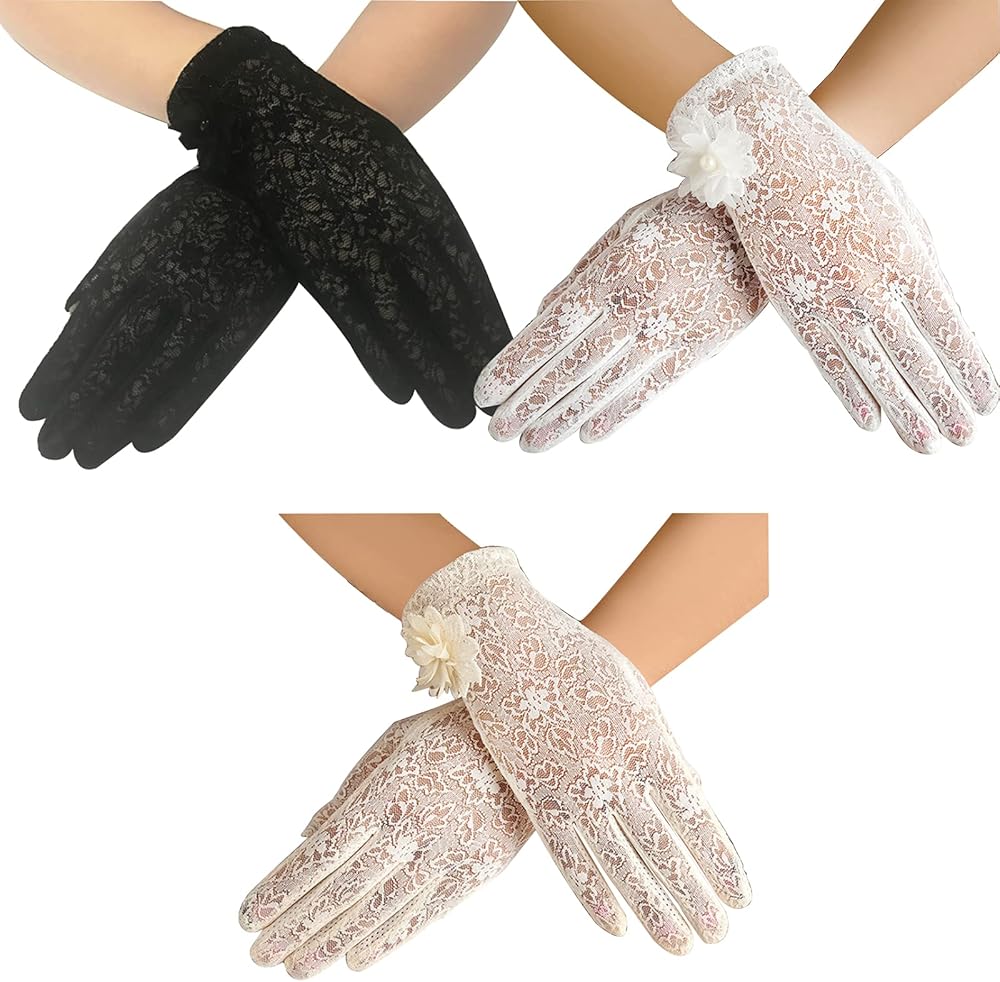 Sexy and sun-resistant lace fullfinger gloves for women