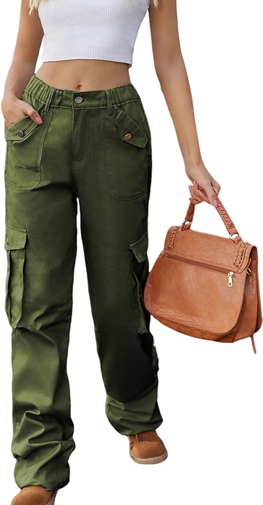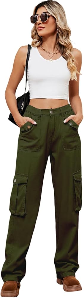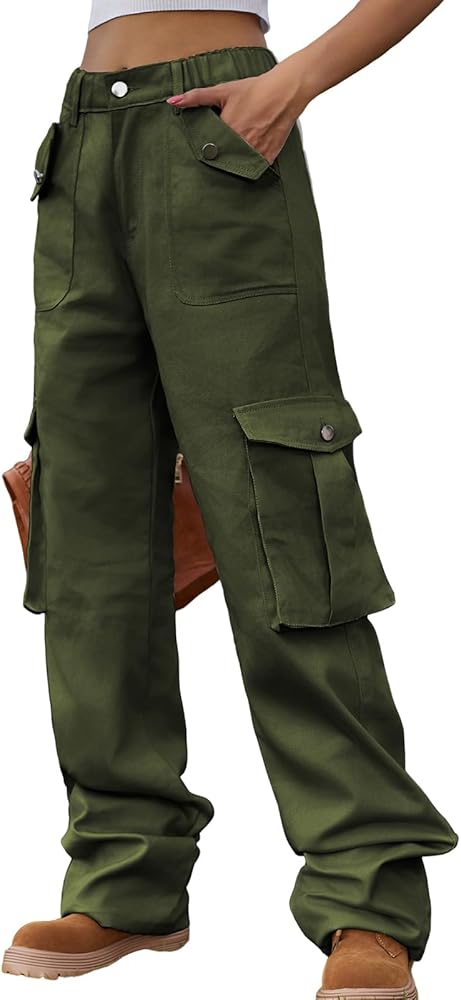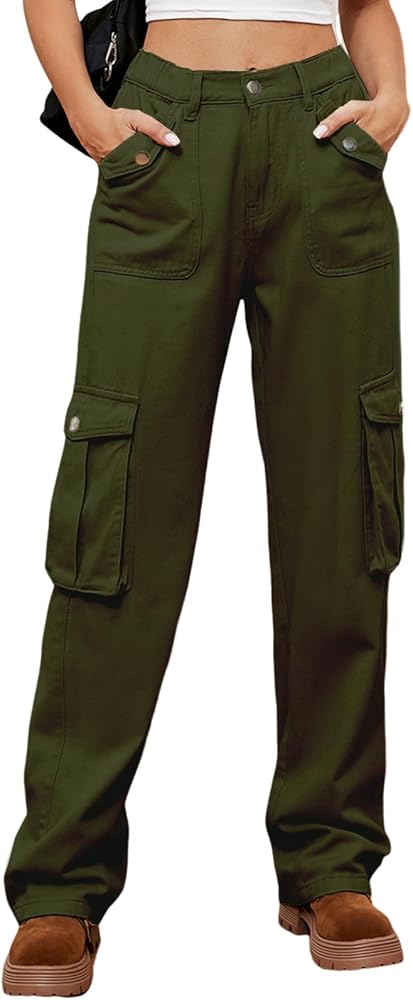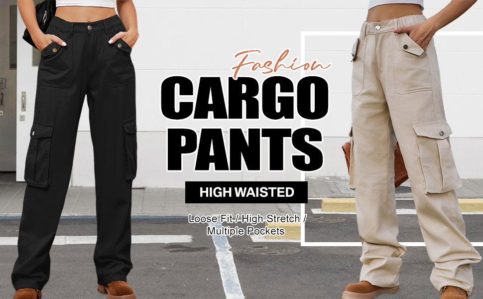 تصميم عصري: سراويل كارجو فضفاضة للسيدات تتميز بخصر عالٍ، وساق واسعة، وحزام خصر مرن، ومقاس مستقيم، وسحاب معدني وزر للإغلاق، طراز Y2K. الجيوب الستة مفيدة جدًا لحفظ أغراضك الأساسية، بما في ذلك جيبان أماميان وجيبان جانبيان على شكل كارجو وجيبان خلفيان.