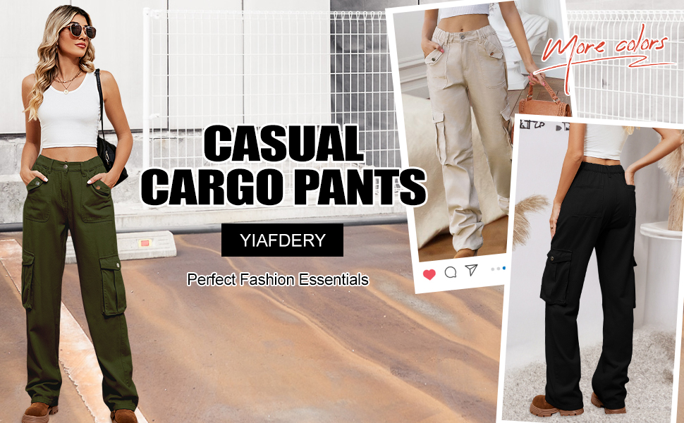 المواد: سراويل YIAFDERY Cargo للسيدات مصنوعة من نسيج ناعم وخفيف الوزن ومتين وممتص للرطوبة، مريح للارتداء طوال اليوم.
