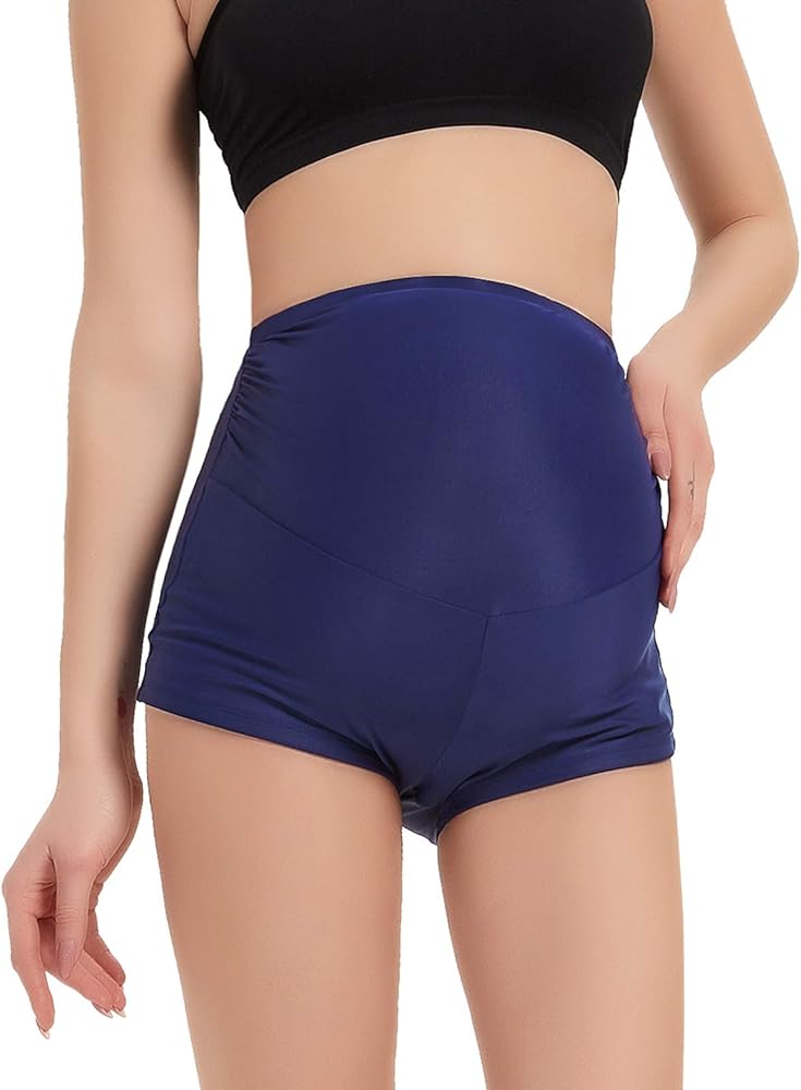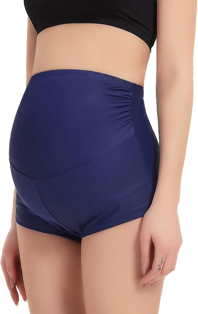 [SIDE RUCHED & HIGH WAIST] Special pleated can provide enough space for your growing belly, and the high waist can support your bump well.It will NOT slip off, whether you swim, run, or lie down. It's wonderful and is worth putting into your pregnancy wardrobe.