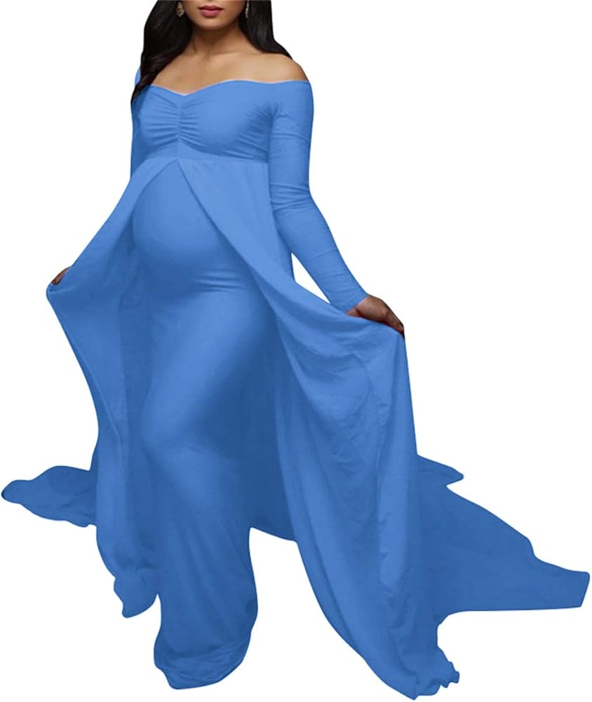 • ✿ فستان طويل للنساء الحوامل بتصميم حورية البحر من الشيفون مكشوف الكتفين، فستان طويل مثير لحفلات استقبال المولود والتقاط الصور، فستان طويل مكشكش قابل للتمدد بأكمام طويلة، فستان طويل بتصميم متقاطع من الأمام ورقبة على شكل حرف V، فستان أمومة صيفي بلون سادة للحوامل غير رسمي بطول يصل إلى الأرض، فستان حفلات رسمي نصف دائري، فستان طويل لطيف لحفلات استقبال المولود لالتقاط الصور. الأم مريحة لارتداء ملابس الحمل المرحة. أفضل هدية للأم الجديدة!