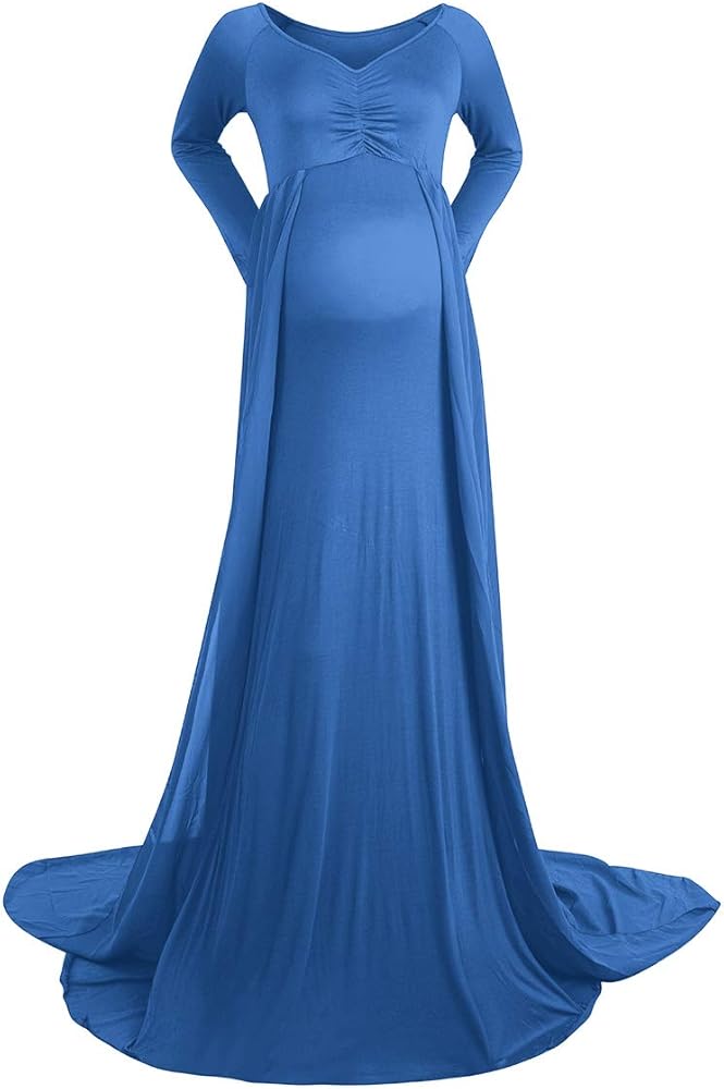 فستان حمل انيق للنساء الحوامل باكمام طويلة وقبة V وقصة ضيقة من الشيفون لالتقاط الصور