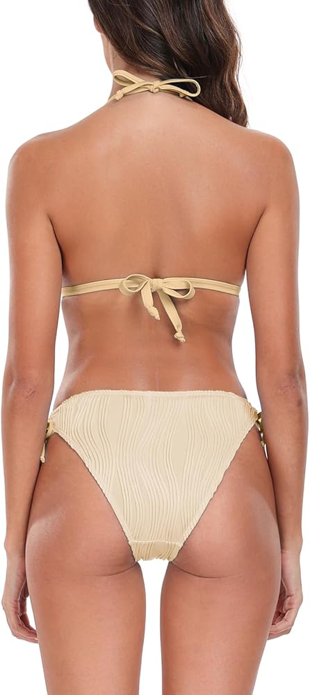 مجموعة بيكيني نسائية من OKEWRIO ملابس سباحة مكونة من قطعتين مثلثة ورسن مثير لملابس السباحة