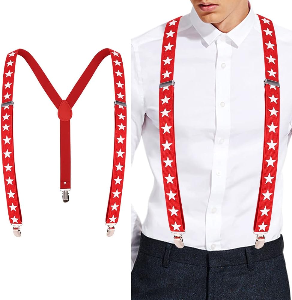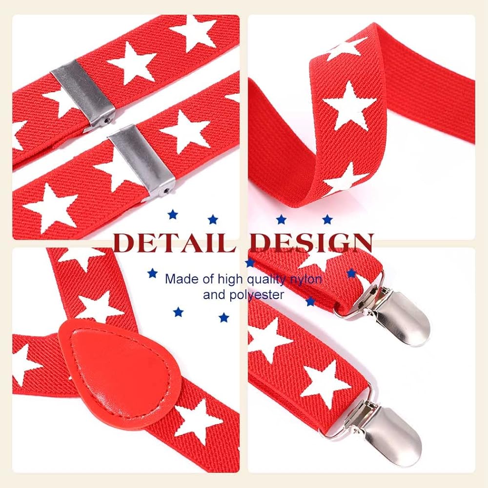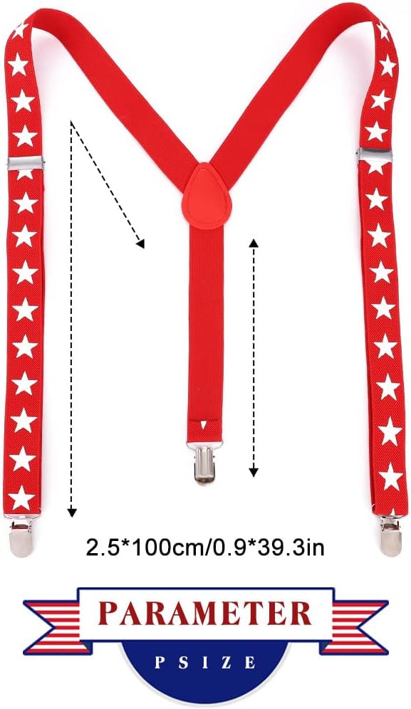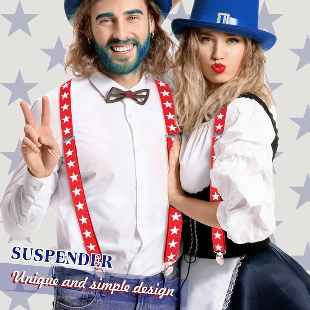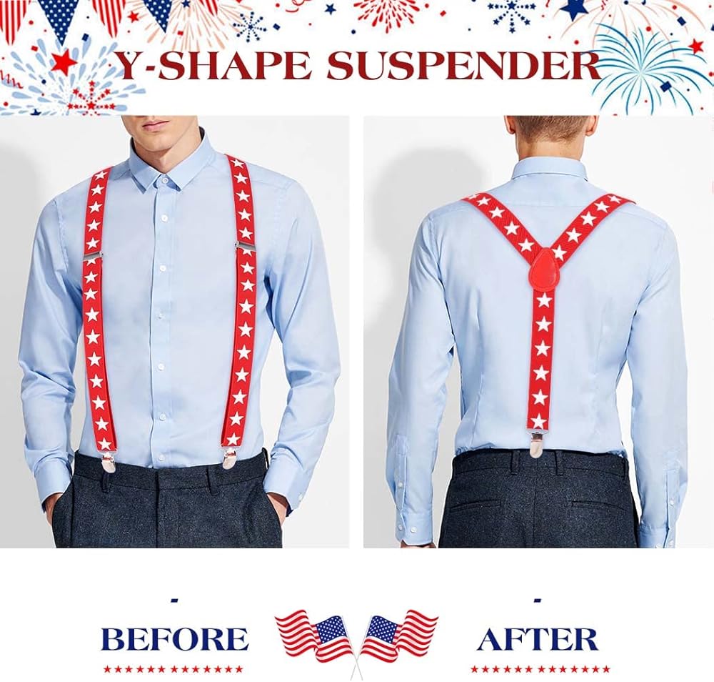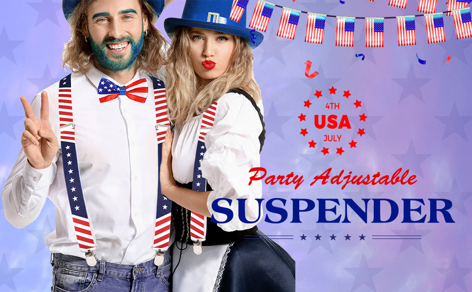 American flag suspenders set is a good choice as a gift to men or women, whether it's your dad, husband, boyfriend, or a female friend, which suitable for wearing it for party, show, Independence Day of the United States, Festival and other occasions.
