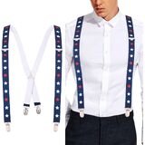 Mens suspenders has a unique and simple design.The colors of suspenders are mainly composed of red, white and blue.And there is also a five-pointed star pattern on it.There are symbols of the elements of the American flag. It can let you be the brightest person in Irish festivals.