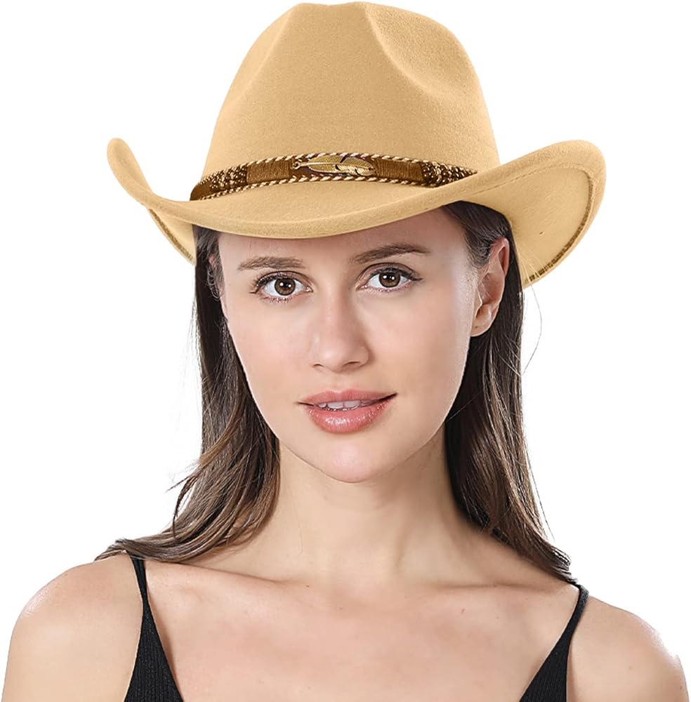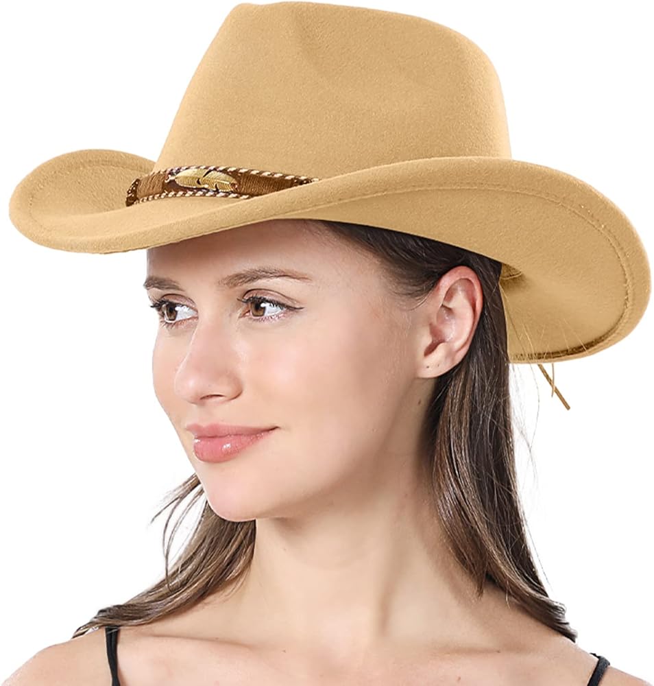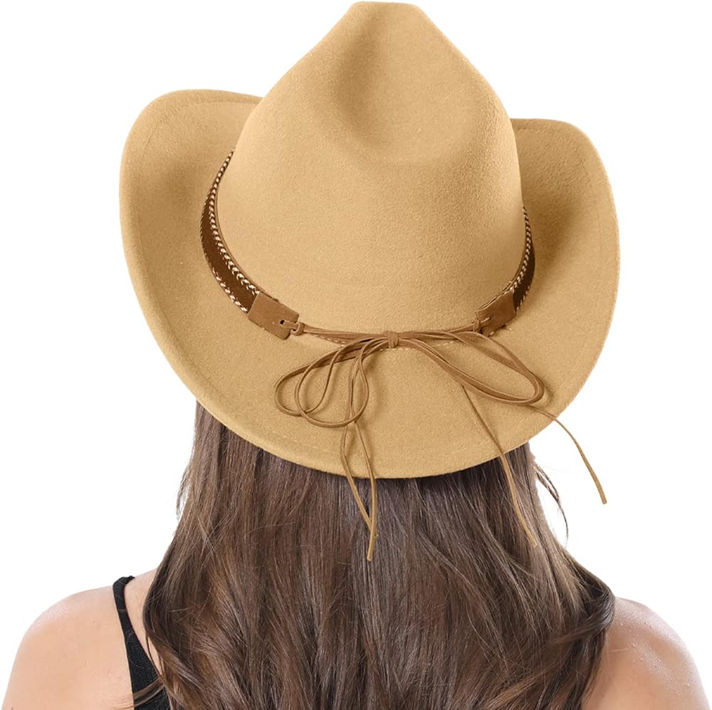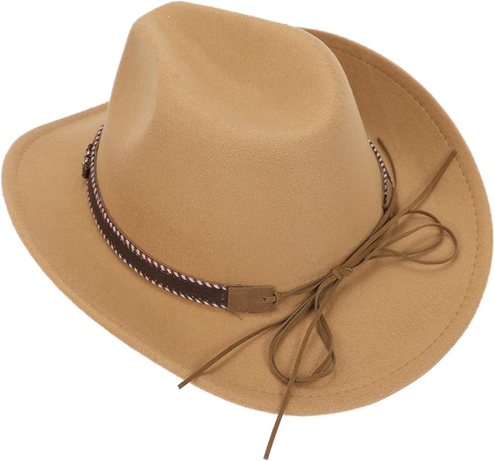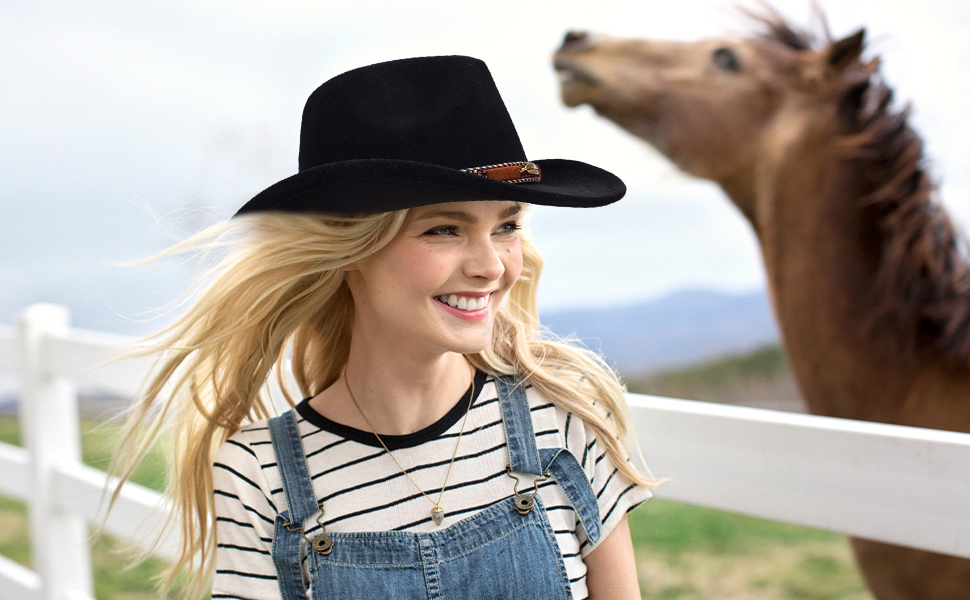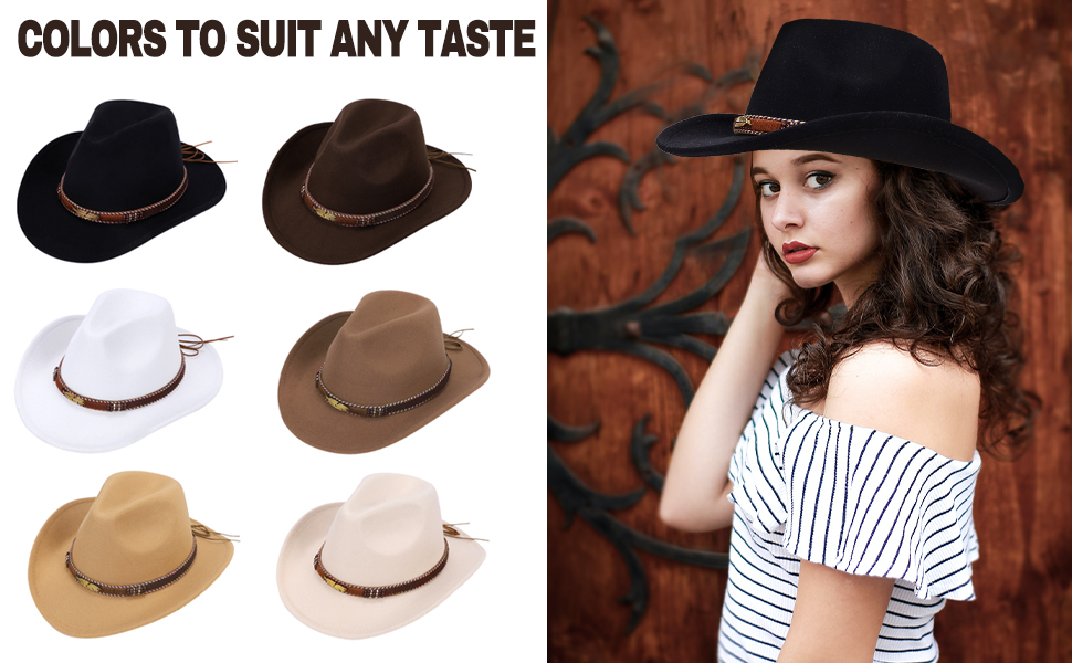 • المواد: مصنوع من 65% قطن، 35% بوليستر. قبعة رعاة البقر للنساء والرجال، قبعة راعية البقر اللباد للبالغين، إكسسوارات ملابس الحفلات الغربية.