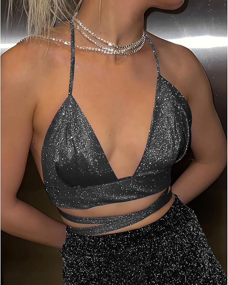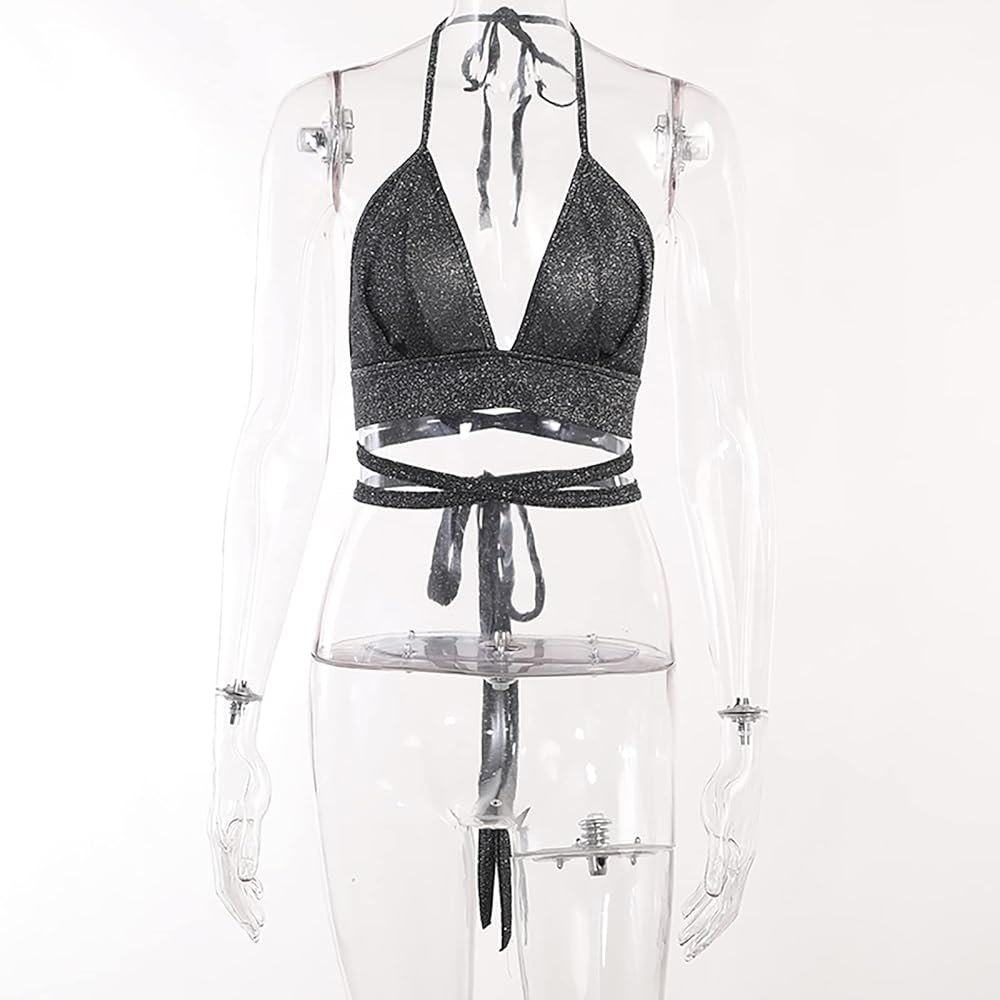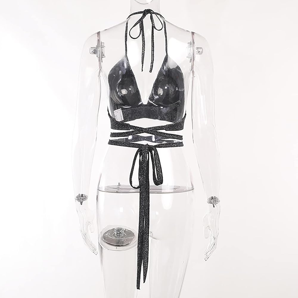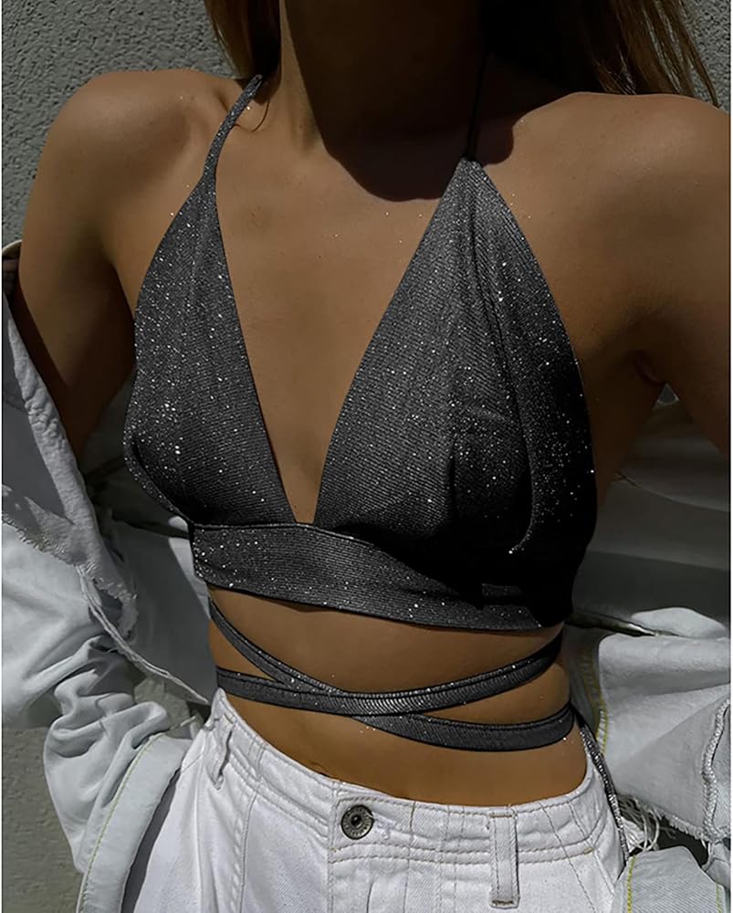 Features: Tie back crop top, no-padded, shiny push up tank top, sexy halter tops.