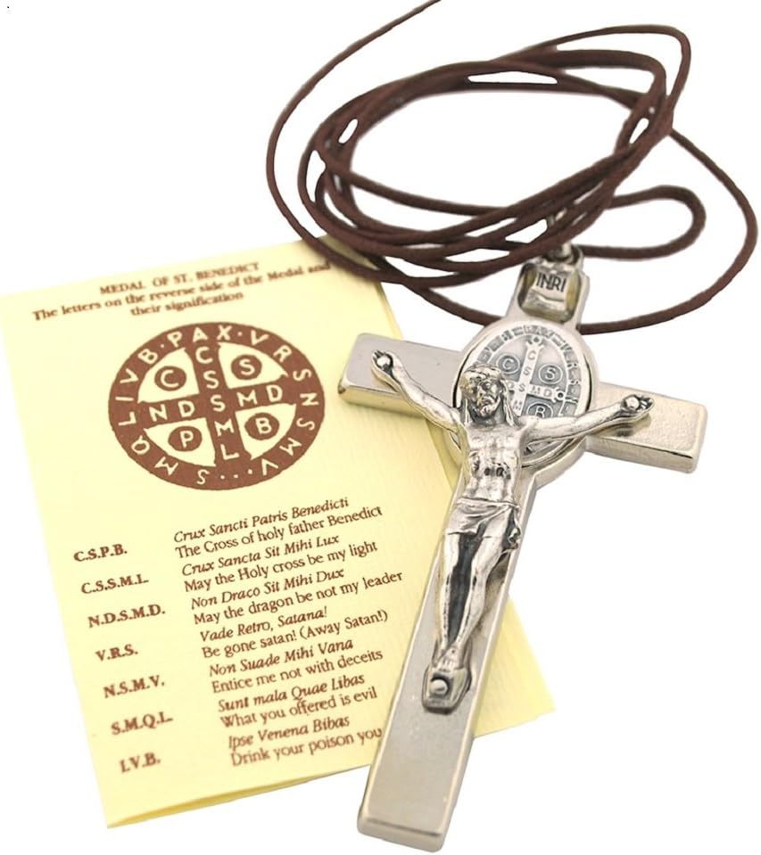 امنح نفسك أو لأحبائك هدية صليب القديس بنديكت الجميلة مقاس 3 انش مع ميدالية سانت بنديكت البيضاوية لأي مناسبة خاصة أو عطلة. مصنوعة على يد حرفيين أصليين وأنيقين، كل من هذه الصليبات مصنوعة من معدن فضي لامع ومتين ومينا ملونة. يأتي كل صليب مع كتيب معلومات عن ميدالية القديس بنديكت وحبل من النايلون. امنح نفسك أو لأحبائك صلبًا في أي مناسبة خاصة أو عطلة مثل الكريسماس أو عيد الفصح أو المناولة الأولى أو أعياد الميلاد أو الذكرى السنوية. اعلم أنه سيتم الاعتزاز به لسنوات قادمة.