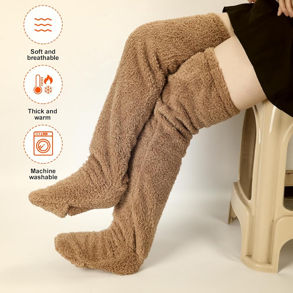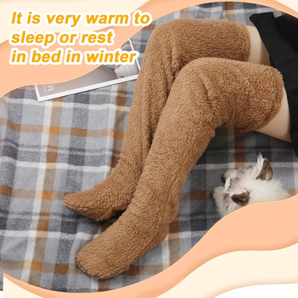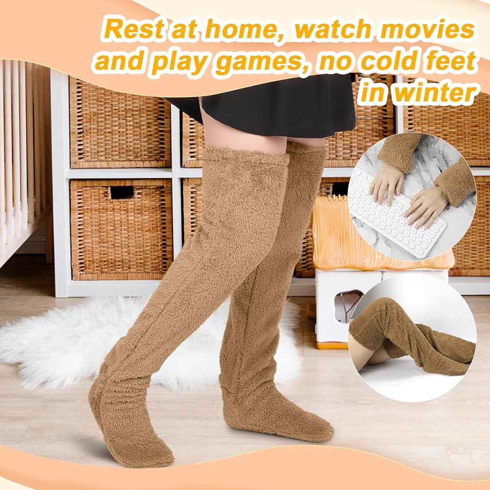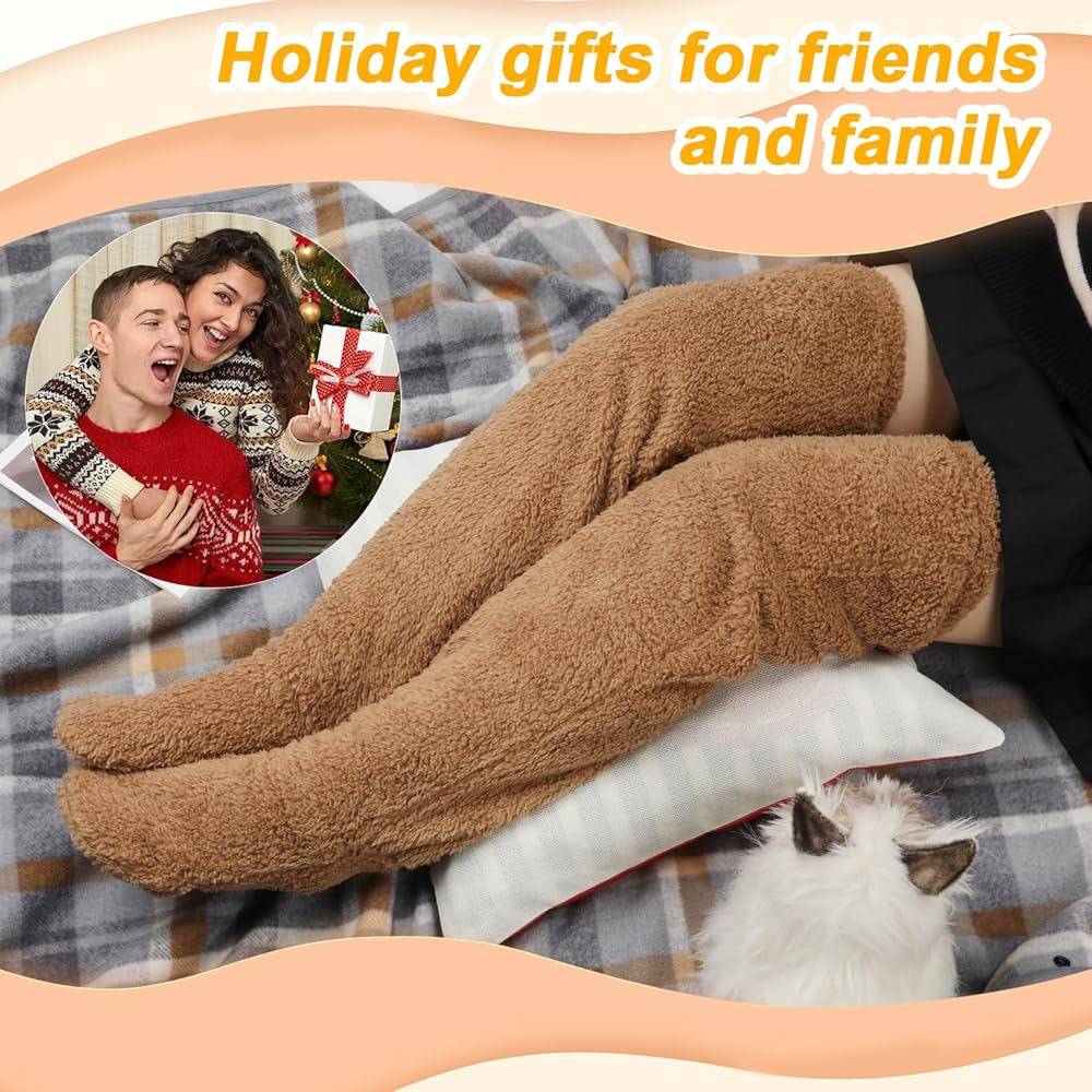 NQEUEPN Plush Warm Long Socks, Warm Plush Long Socks, Plush Slipper Stockings, Furry Long Leg Warmers, Fluffy Thigh High Socks for Women, Winter Sleeping Socks at Home