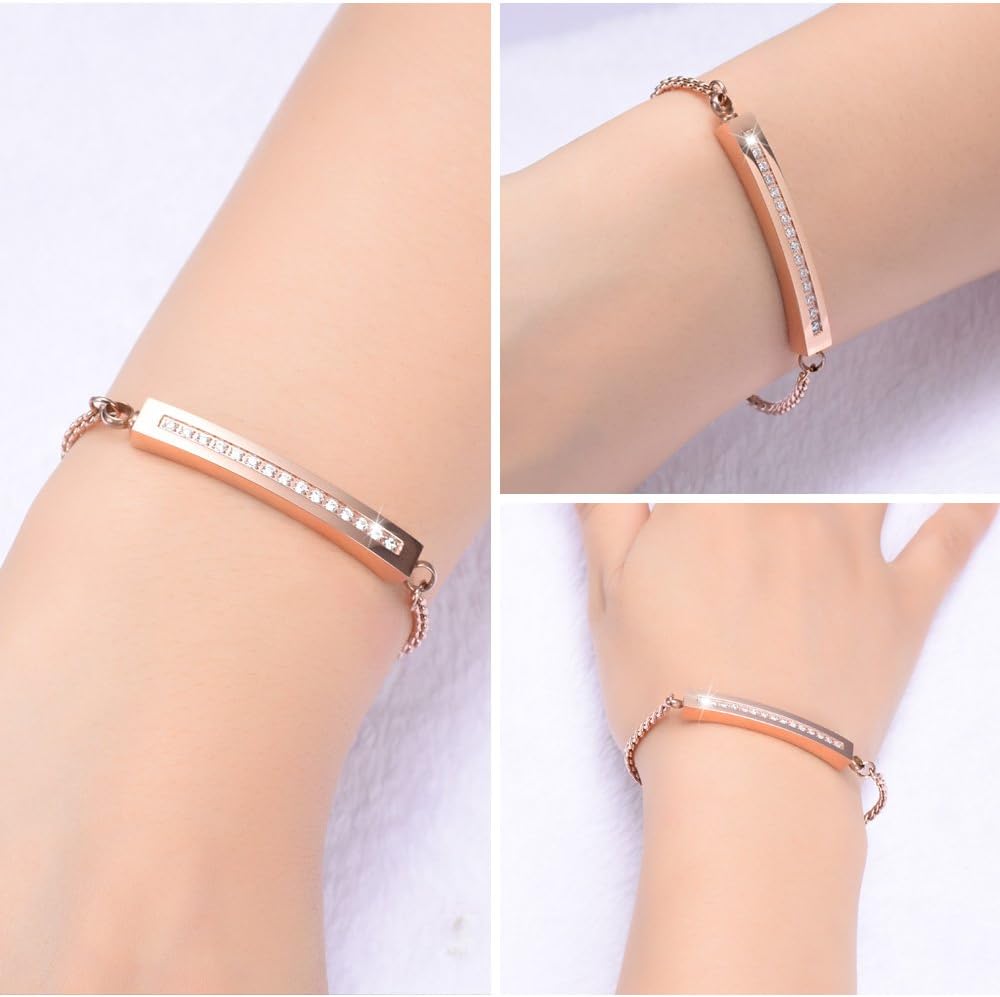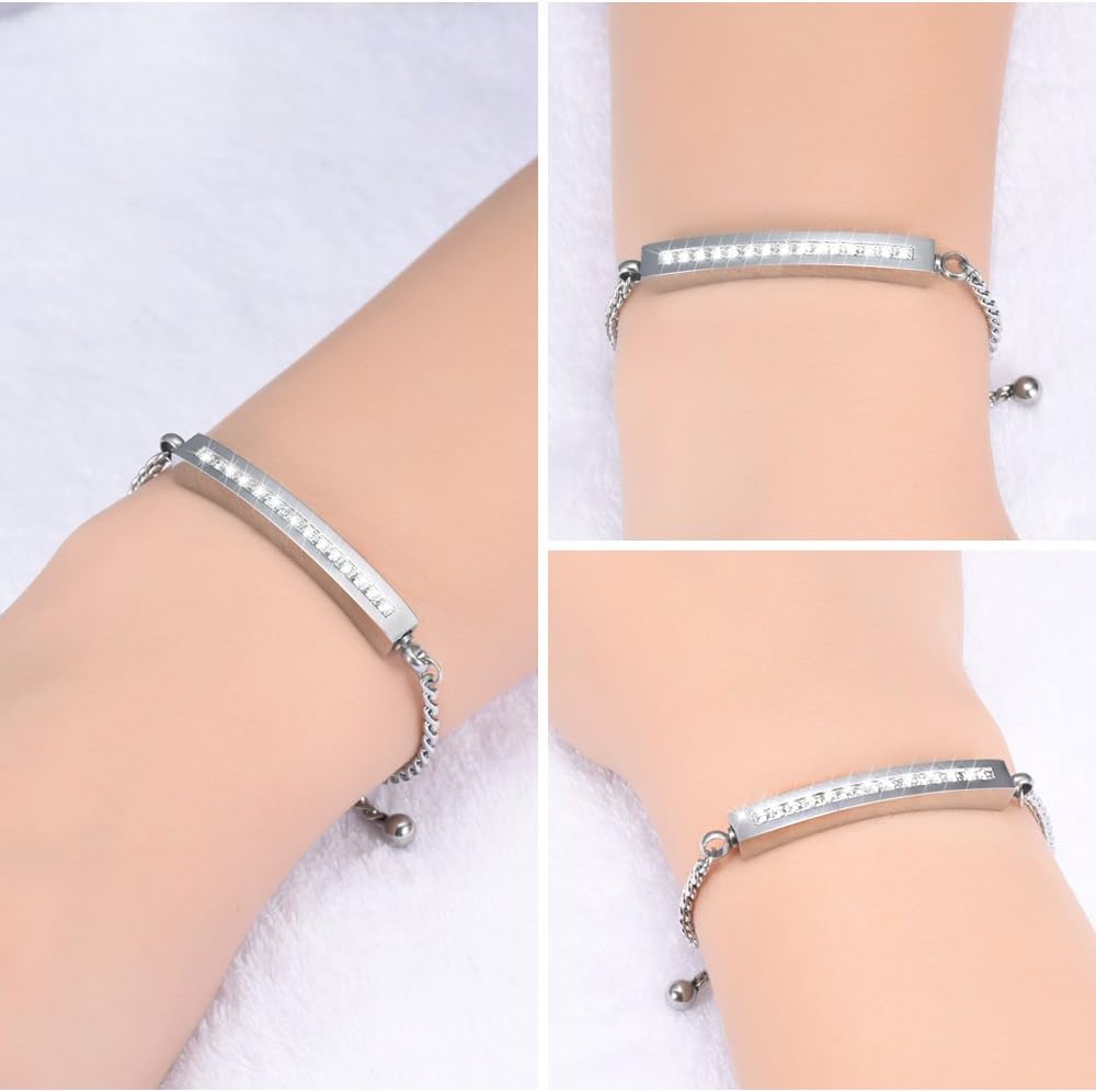 💎【حجم قابل للتعديل】يمكن تعديل هذا السوار بسحب ليناسب أي شخص تقريبًا. مصنوعة من الفولاذ المقاوم للصدأ 316l والكريستال عالي الجودة، ومضادة للصدأ ومتينة، ولا تبهت أبدًا.