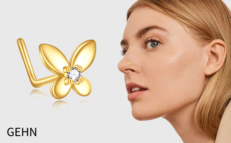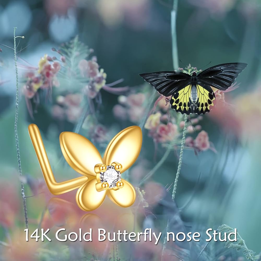 【مادة عالية الجودة】خاتم الأنف على شكل فراشة مصنوع من الذهب الخالص عيار 14 قيراط (ذهب حقيقي، ليس فقط مطليًا)، مرصع بزركونيا مكعب صغير، لامع وأنيق للغاية. أقراط الأنف على شكل فراشة من الذهب عيار 14 قيراط خالية من النيكل والرصاص ولا تسبب الحساسية ومريحة في الارتداء حتى للبشرة الحساسة.