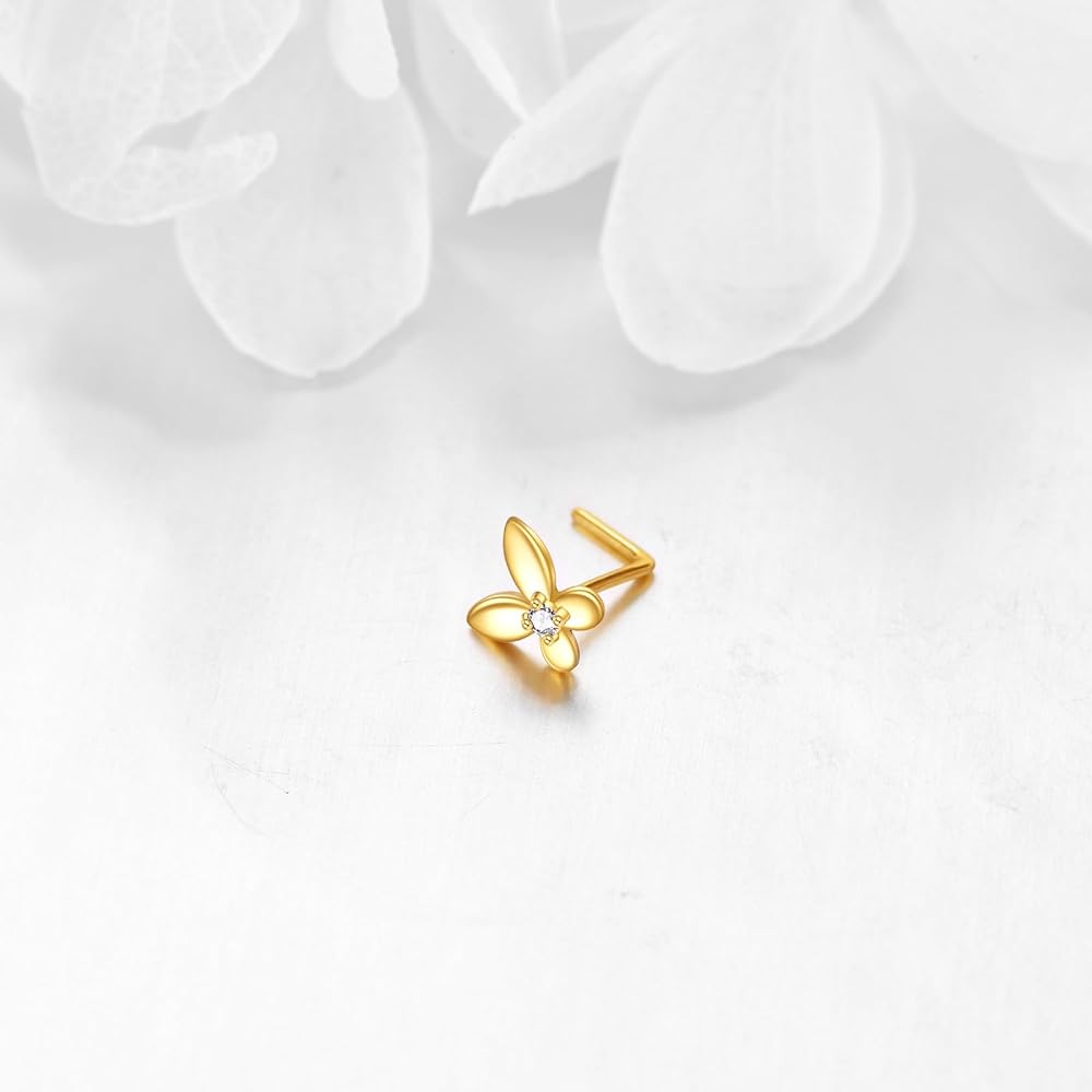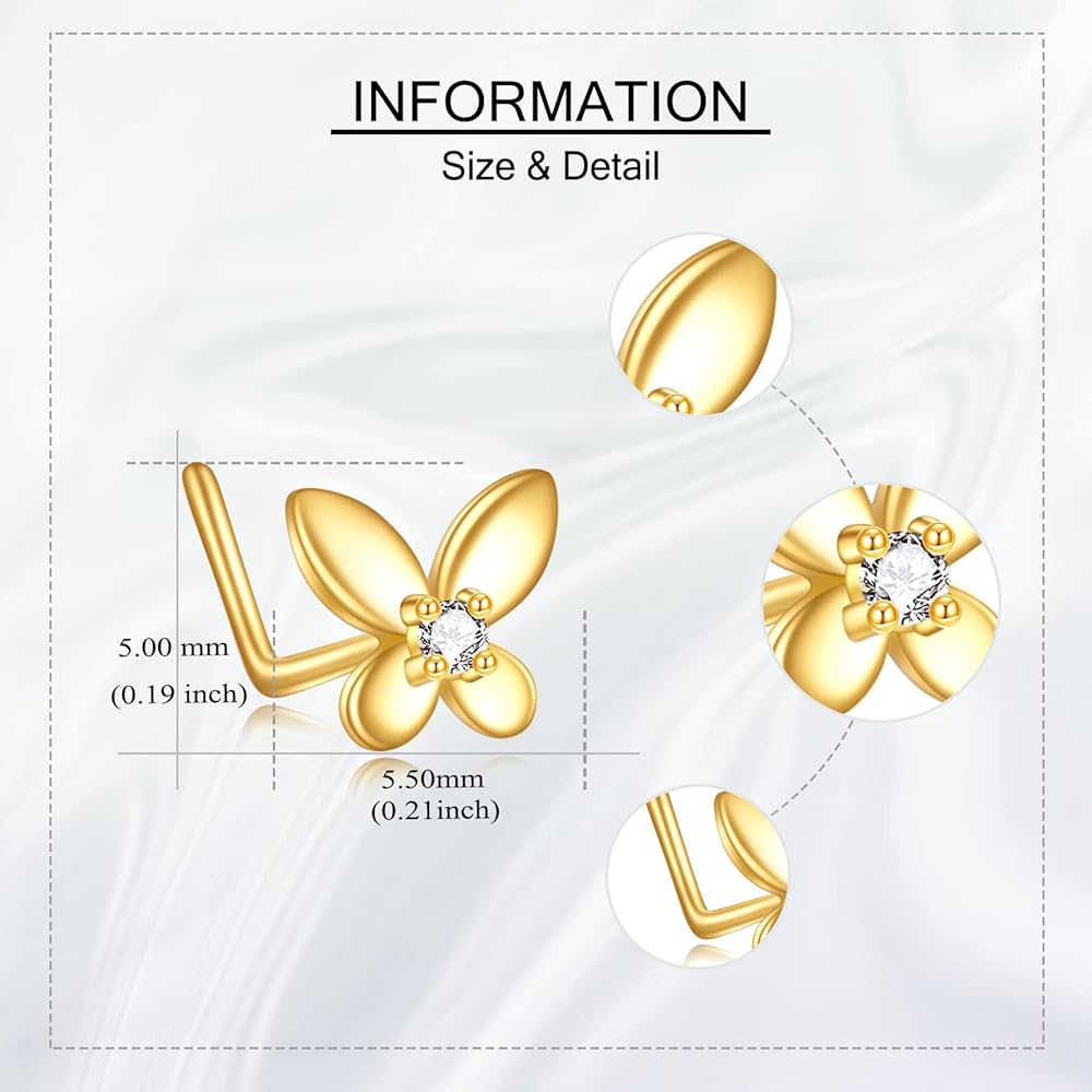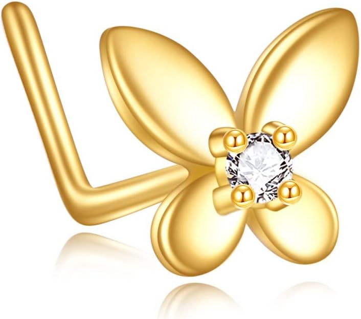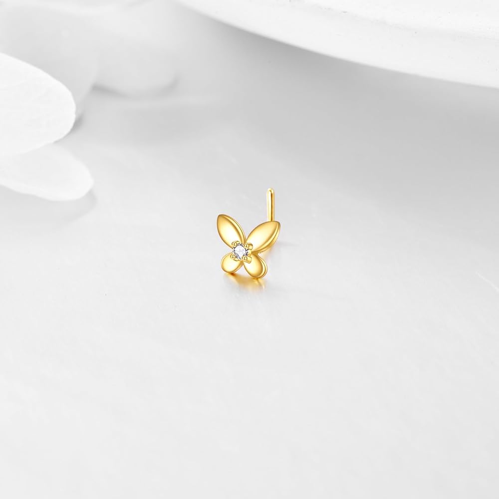 حلق انف على شكل فراشة من الذهب عيار 14 قيراط، حلق انف على شكل فراشة، مجوهرات ثقب الانف هدايا للنساء والفتيات (مقاس 20)، زركونيا مكعب, الذهب الأصفر, زركونيا مكعب