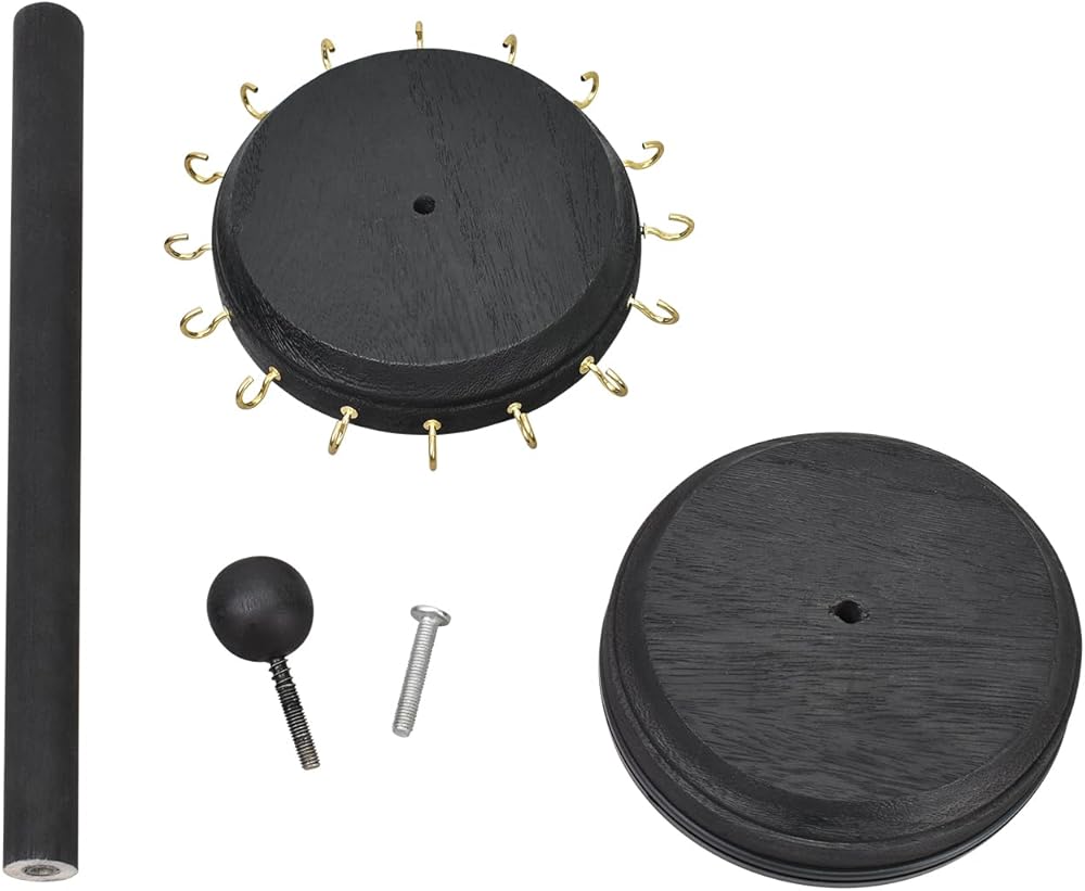 المادة والمقاس - خشب؛ الإجمالي: 6.3 بوصة عرض × 6.3 بوصة عمق × 14.5 بوصة ارتفاع؛ أقراص خشبية مستديرة 5 بوصة عرض × 5 بوصة عمق.