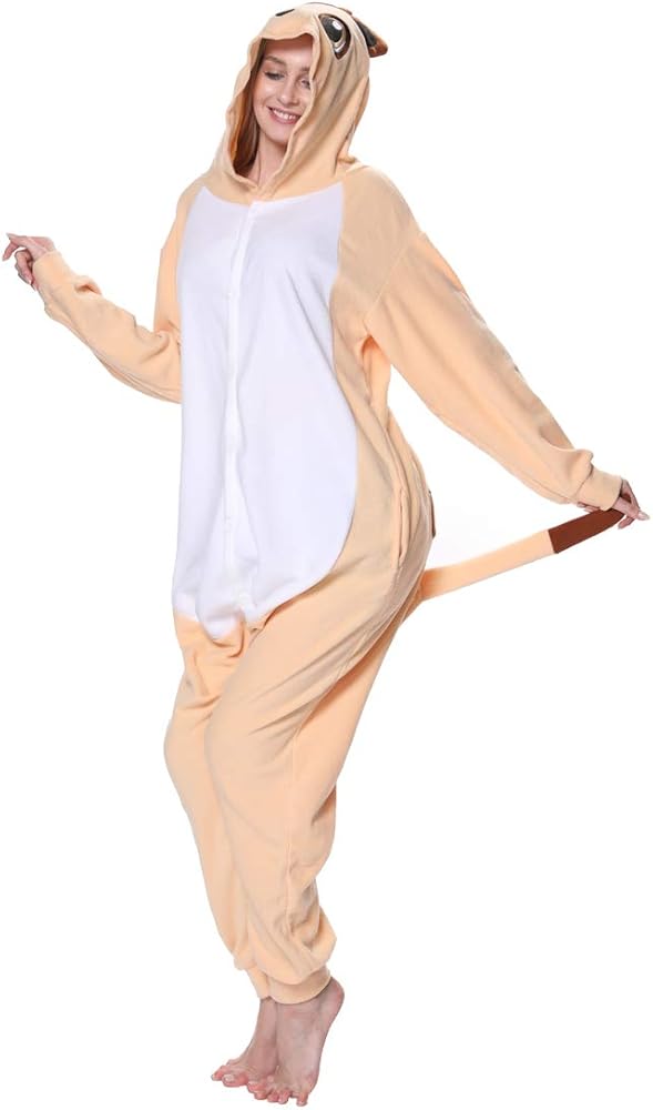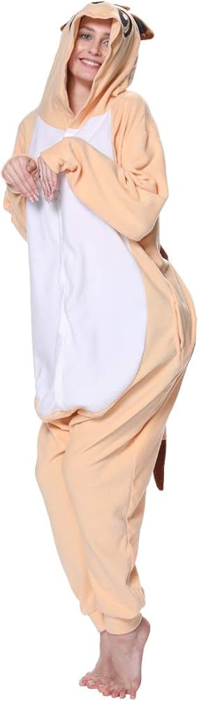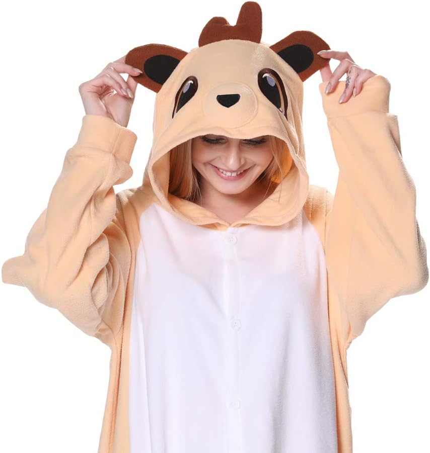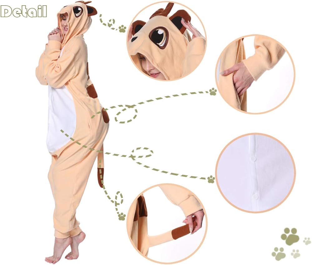 dressfan Animal Onesie Meerkat Pajamas One Piece Sleepwear Cosplay Costume Funny Women Pajama Party for Unisex Adults Teens Kids Yellow
