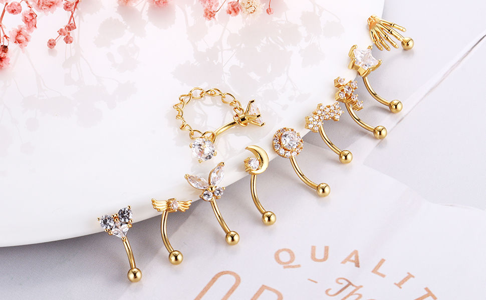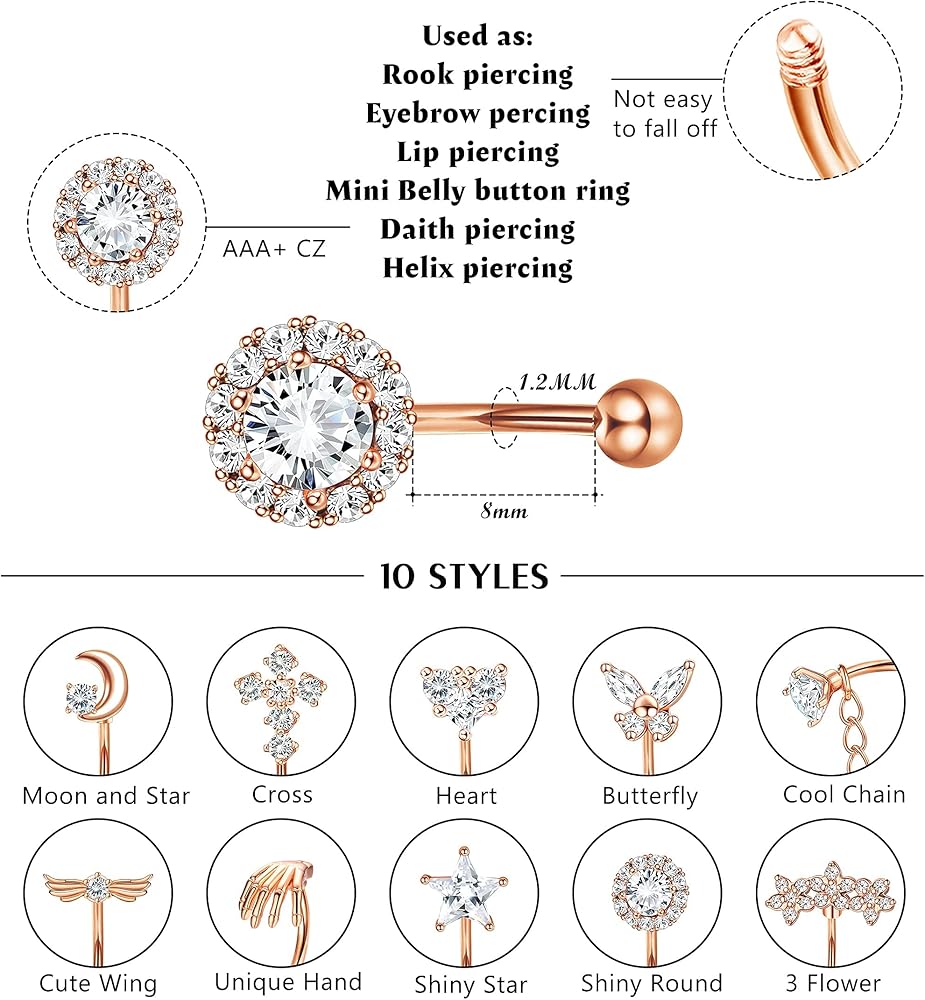 الاستخدام: يمكن استخدام مجموعة المجوهرات المثقوبة للجسم هذه كحلقات للحواجب وحلقات ثقب لجسر الأنف، وأقراط غضروفية، وحلق دايث، وحلقة حواجب منحنية، وحلقة زر صغيرة للبطن، وحلقة شفة عمودية.