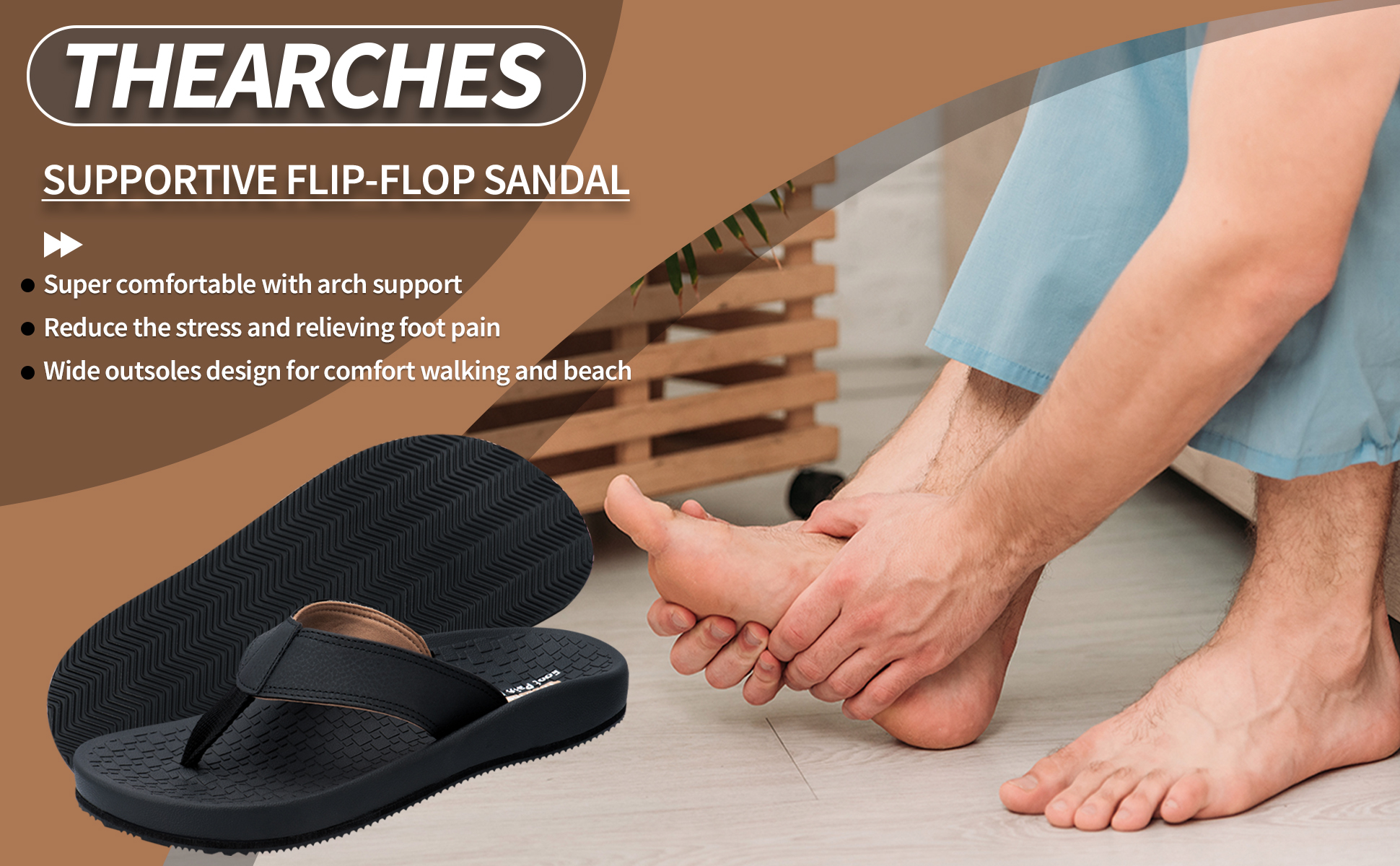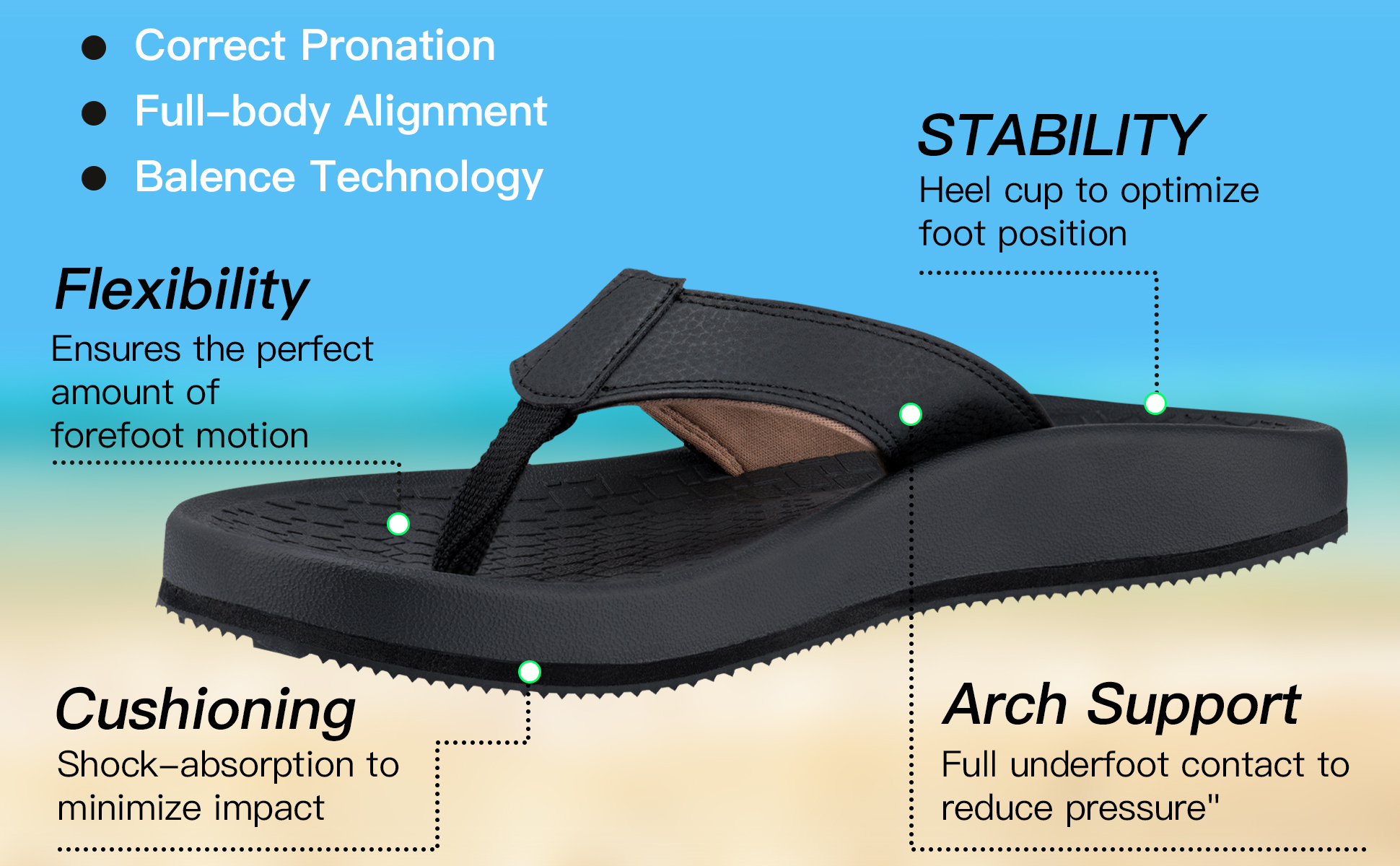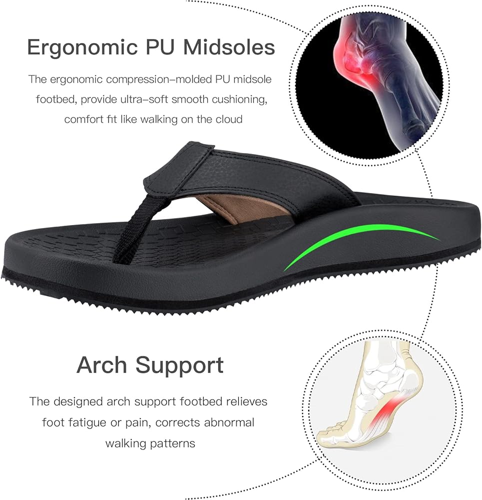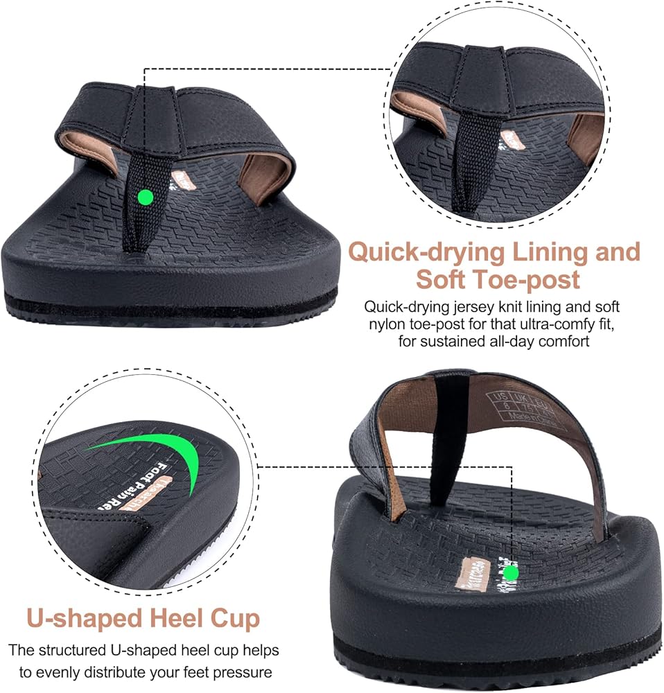 وسادة قدم داعمة لتقويم العظام: وسادة قدم مصممة من قبل أطباء الأقدام مدمجة في صنادل Thearches والنعال والشبشب لتعزيز الثبات من الألف إلى الياء. تقنية Thearches لتعزيز المحاذاة الصحيحة للقدم وتوزيع ضغط القدم، وتوفير الدعم لالتهاب اللفافة الأخمصية، والقدم المسطحة، ونتوءات/ألم الكعب، وتساعد أيضًا على تصحيح مشيتك ووضعيتك.
