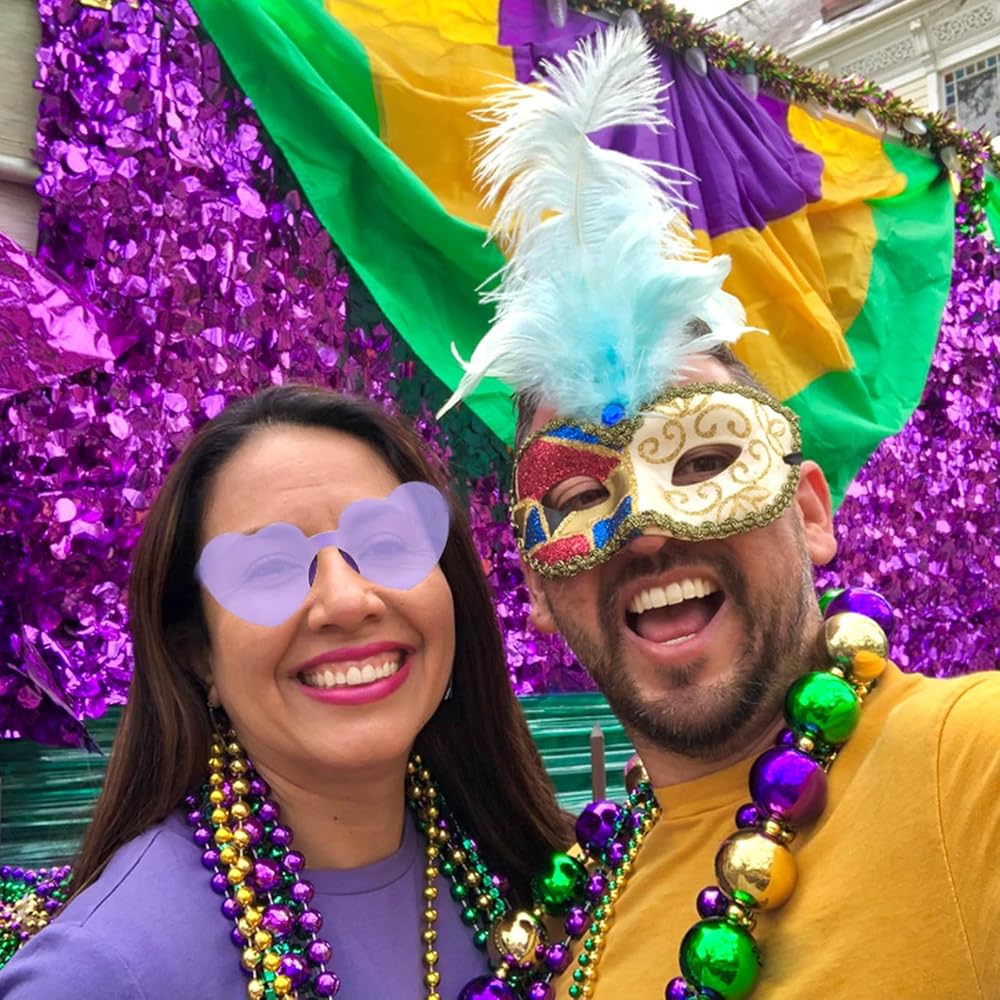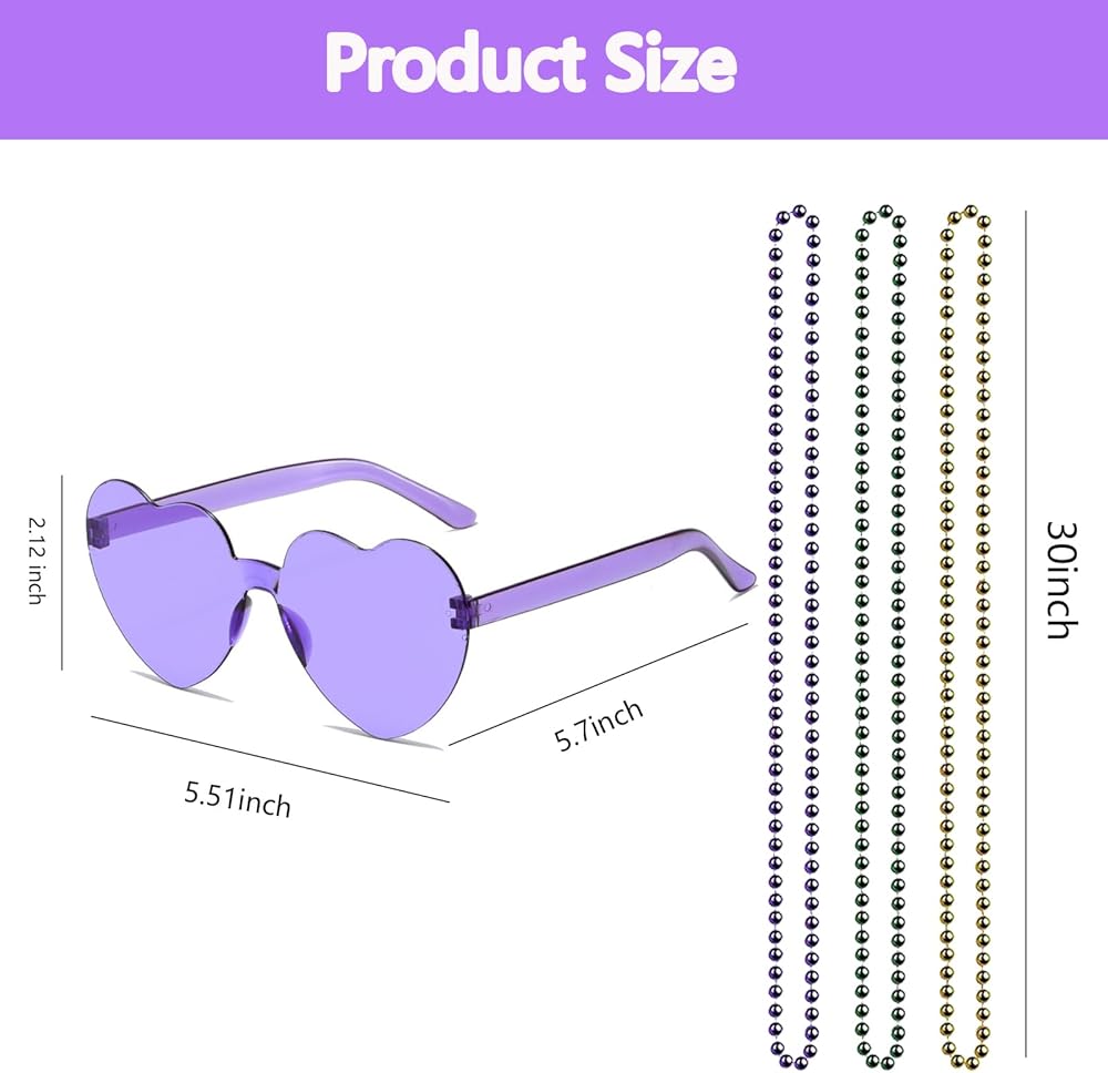 Mardi Gras Beaded Necklaces and Heart Glasses,Mardi Gras Fleur De Lis Sunglasses Mardi Gras Costumes for Mardi Gras Parade Masquerade Party Decorations Supplies