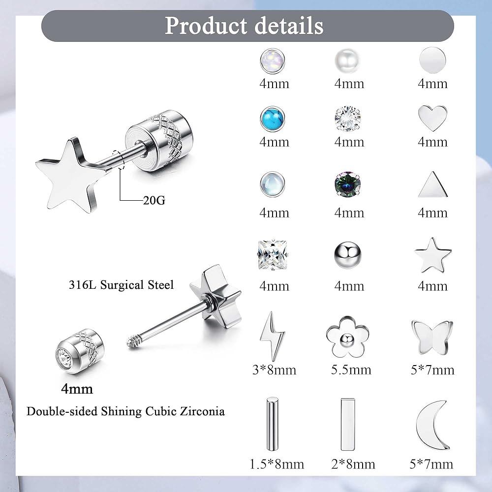 • 💎【حجم الأقراط المرصعة التي لا تسبب الحساسية】: سُمك شريط الأقراط الصغيرة ذات الظهر المسطح: 20 جم = 0.8 مم، قطر الكرة/النقطة/اللؤلؤ/القلب/الزركونيا المكعب: 4 مم، الزهرة: 5.5 مم، إلخ. مجهزة بشكل جيد وقابلة للتكديس. خيار قوي للأشخاص الذين لديهم العديد من ثقوب الأذن. يمكن استخدامها أيضًا كأقراط غضروفية، وثقب حلزوني، وثقب تراجوس، وأقراط ذات فتحة ثانية.