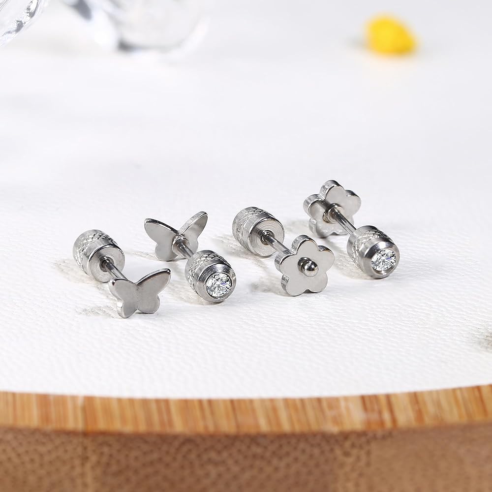• 👧【أقراط فولاذية جراحية للأذنين الحساسة】: أقراط فاخرة ذات ظهر لولبي مصنوعة من الفولاذ الجراحي 316L، خالية من الرصاص والنيكل، مناسبة للأذنين الحساسة. سطح مصقول وناعم للغاية، مريح في الارتداء. إبزيم خلفي مرصع بالزركون المكعب AAAAA+ دائري لامع، حتى تتمكن من تبديل الاتجاهات لخلق نوعين من تجربة الارتداء.