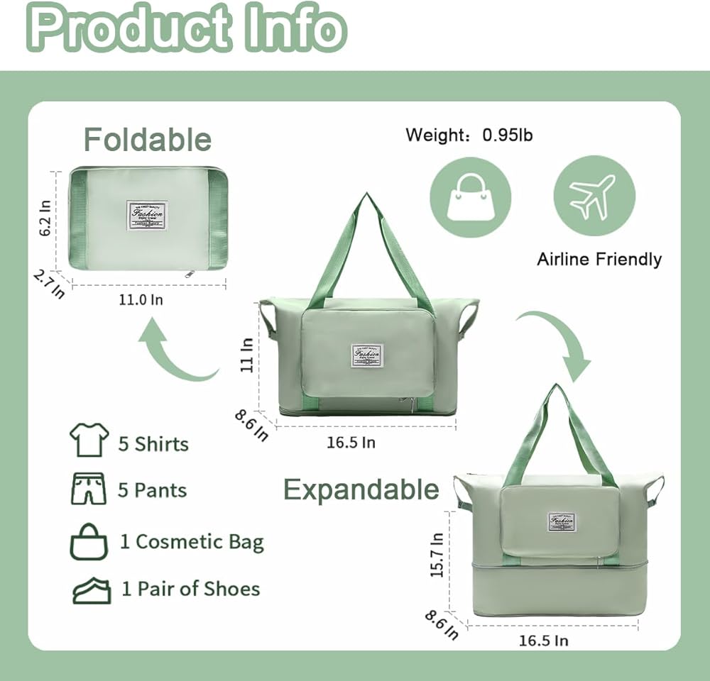 قابلة للتوسيع والطي✈حجم حقيبة الصالة الرياضية: 16.5 × 11 × 8.7 بوصة بسعة 25 لترًا. يمكن طيها بسرعة على نفسها بحجم صغير لسهولة التخزين. يوجد سحاب في الأسفل مما يجعل الحقيبة قابلة للتوسيع عندما تحتاج إلى مساحة أكبر.