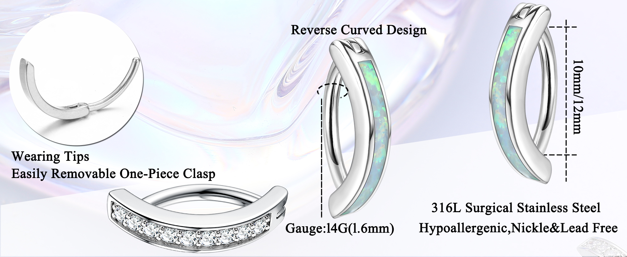 Fansilver 14G الفرس حلقات زر البطن الجراحية الصلب أوبال حلقات البطن للنساء لطيف صغير هوب حلقات زر البطن بسيطة عكس السرة ثقب المجوهرات تشيكوسلوفاكيا ثقب البطن المجوهرات