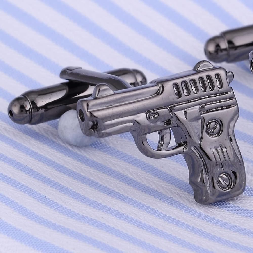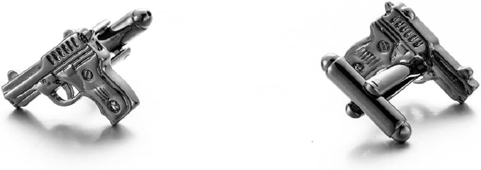 【المقاس】- 19 × 16 ملم، زوج من أزرار السهرة الفضية مع تصميم مسدس لكل عبوة حوالي 20 غرام.