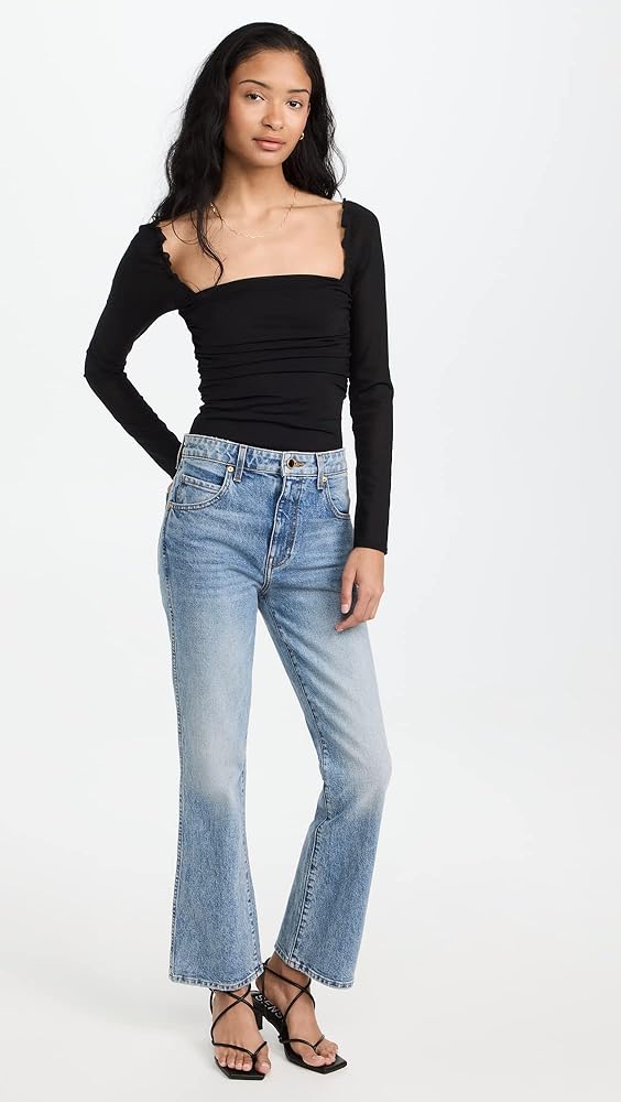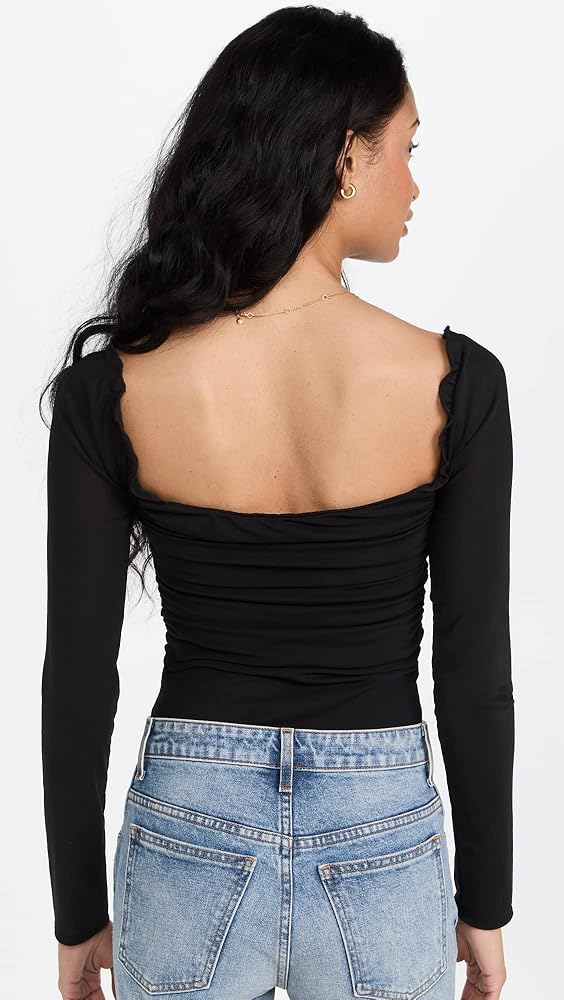 - شبكة مكشكشة وزخرفة مكشكشة، لباس داخلي من الجيرسي مع وصلة كبس، خط عنق مربع وأكمام طويلة