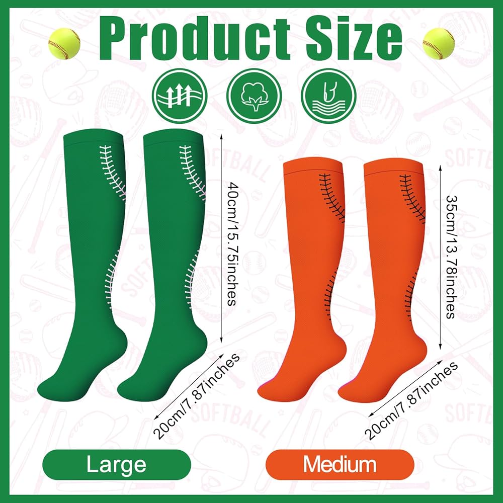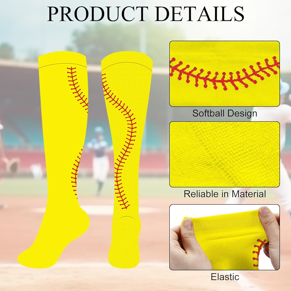 • تصميم أنيق: تتميز بأنماط الكرة اللينة النابضة بالحياة والملفتة للنظر، هذه الجوارب اللينة المضحكة كلاسيكية ولكنها عصرية؛ يساعد التصميم الجديد عائلتك على تحديد موقعك أثناء الألعاب، ويشجعك على حب الكرة اللينة