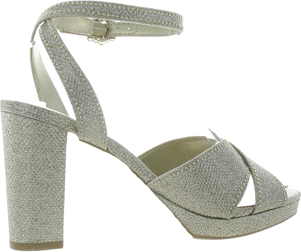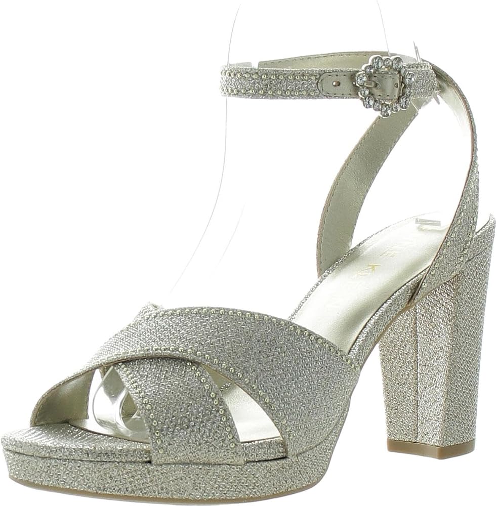 Be prepared to charm the crowd with your effortless look by slipping into the Anne Klein Ventura sandals. Textile upper with crisscross straps and rhinestone embellishments around the edges. PU lining with cushioned footbed. Open almond toe silhouette. High block heel. Adjustable buckle closure on the ankle strap. Durable textile and synthetic outsole. Imported.