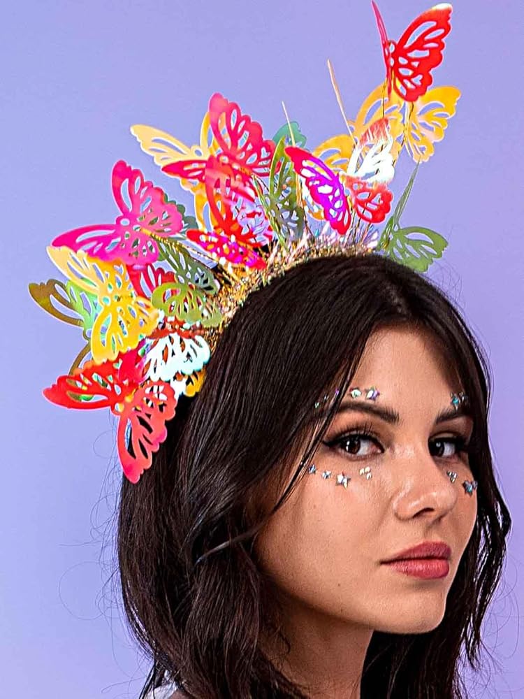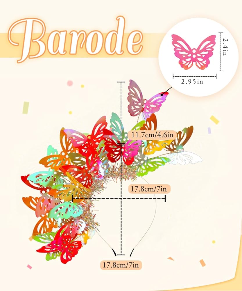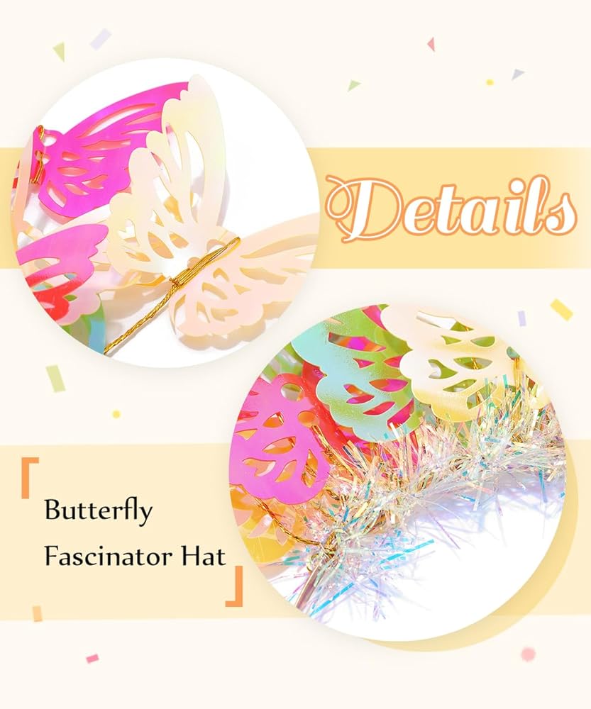 • 1. قبعة الفراشة مصنوعة من الترتر الملون اللافت للنظر، مصنوعة من الترتر عالي الجودة وسبائك متين، والتي يمكن تثبيتها بقوة على الرأس.