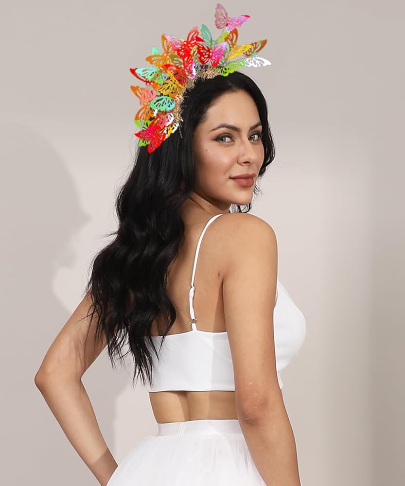 • 4. أغطية الرأس النسائية المضيئة خفيفة الوزن للارتداء لفترة طويلة، تصميم مصنوع يدويًا، نمط مبتكر، فراشات ملونة مرفقة على أسلاك سبائك مرنة. يمكن ثني الفراشات في أوضاع مختلفة.