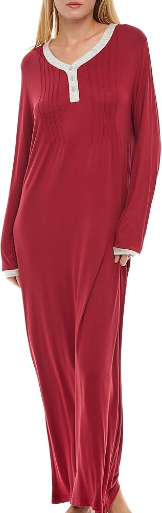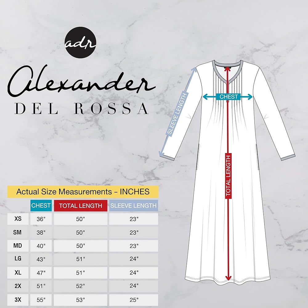 قميص نوم نسائي طويل من نسيج ناعم من Alexander Del Rossa، قميص نوم طويل بطول كامل، بيجامة هينلي مع جيوب