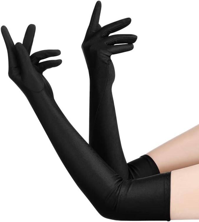 قفازات الساتان: مصنوعة من البوليستر القابل للتمدد، وطول أنيق وقفازات الساتان المستوحاة من الطراز القديم تناسب بشكل جيد وتبدو رائعة. علبة السجائر السوداء خفيفة الوزن قابلة للاستخدام بشكل كامل مع السجائر الحقيقية/المزيفة. عد إلى العشرينيات مع زي فلابر الرائع!