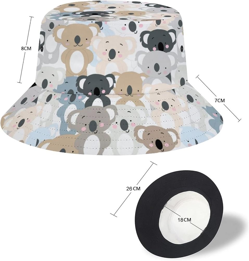• 【PREMIUM MATERIAL】This Cute Koala fisherman hat is made of 70% polyester and 30% cotton, comfortable and breathable for all-day wear. Completely crushable foldable construction make it easy to pack and put it on your bag or pocket, you can bring it everywhere easily.