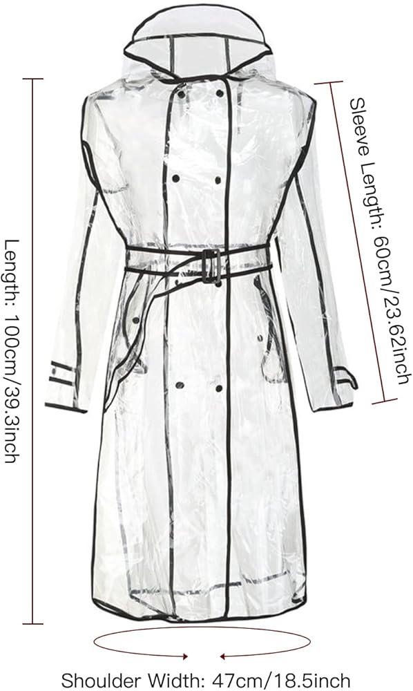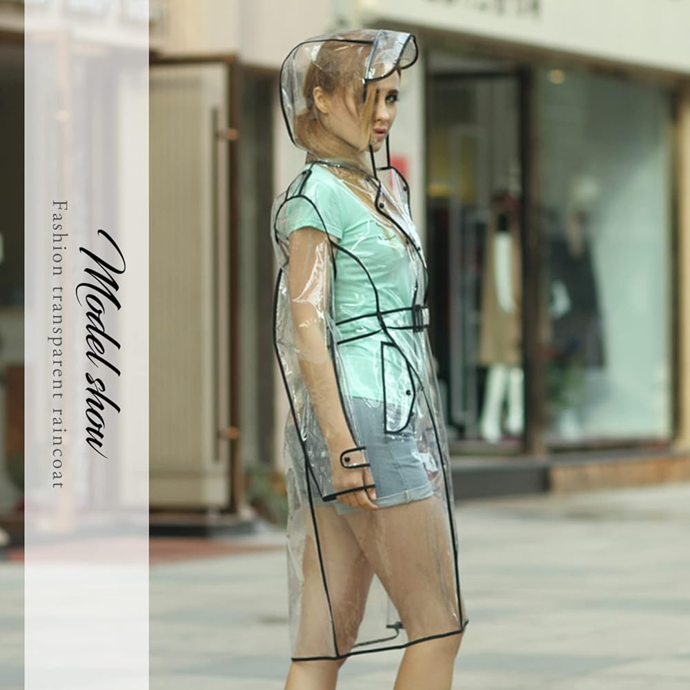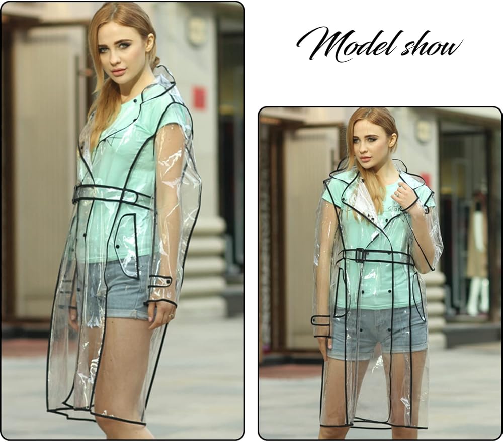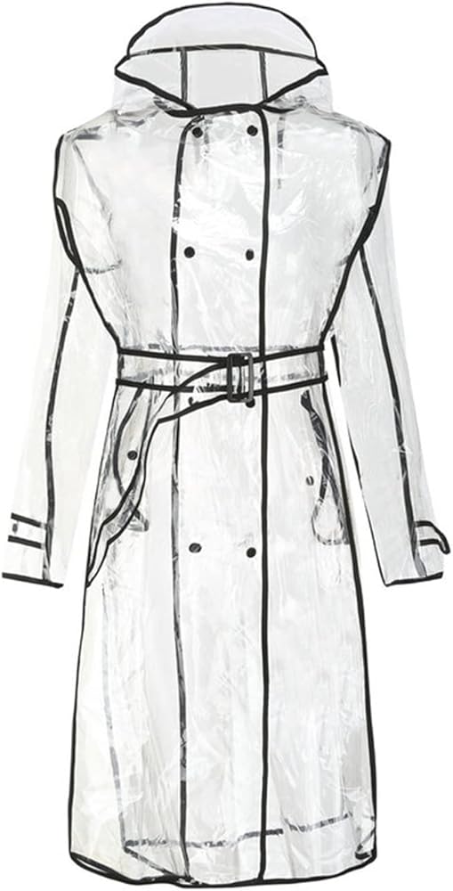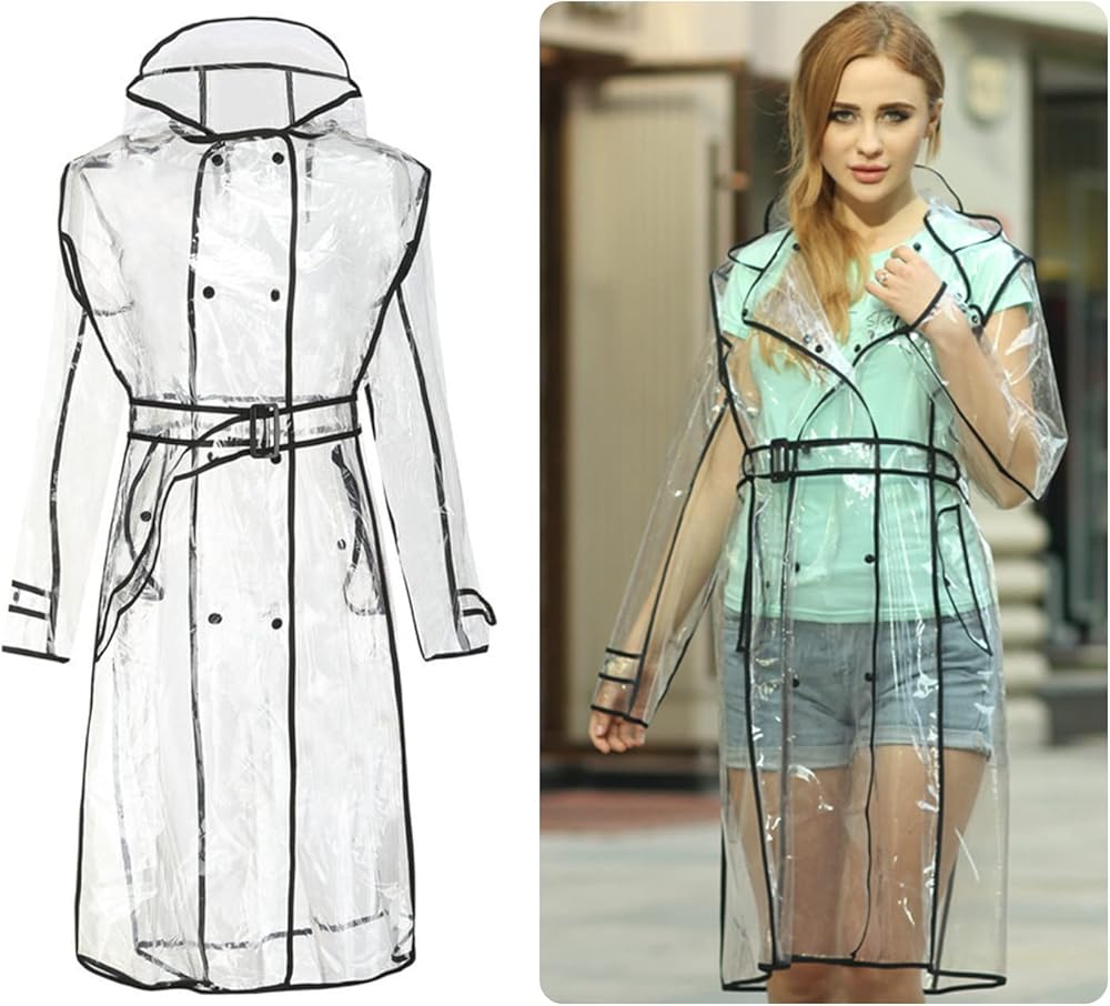 معطف واق من المطر شفاف للنساء من Fecialy مقاوم للماء وغطاء للرأس مع حزام