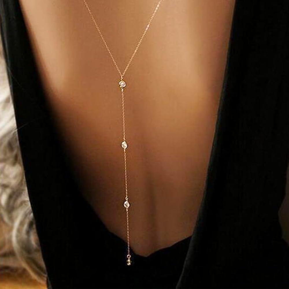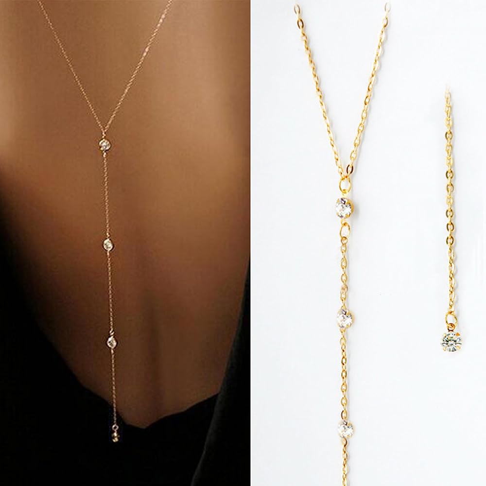 Design--Rhinestone Y Backless Chain Necklace can highlight your perfect body,catching more eyes on you and get more compliment.make you more attractive and charming in the crowd.