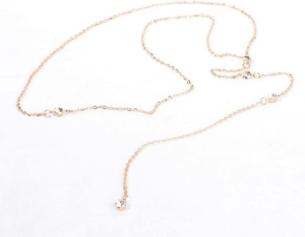 Material--Sexy Crystal body chain made of high quality alloy and crystal,Lasting Color Retention,the texture is clear and comfortable to wear.You can adjust the necklace length to decorate your beauty.