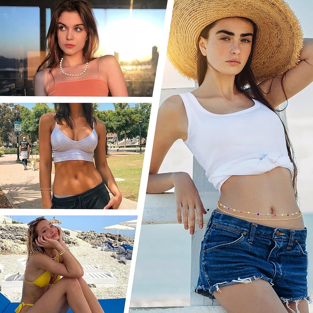 • 💕هدايا مثالية: مجموعة سلسلة بيكيني بسيطة مثالية لأي مناسبة، مثل حفلة الشاطئ، وحفلة البكيني، وحفلة الكوكتيل الصيفية، والرقص، والزفاف، والعطلات. كما أنه هدية رائعة لصديقتك الأنيقة أو زوجتك أو أختك أو ابنتك أو صديقاتك الأخريات.
