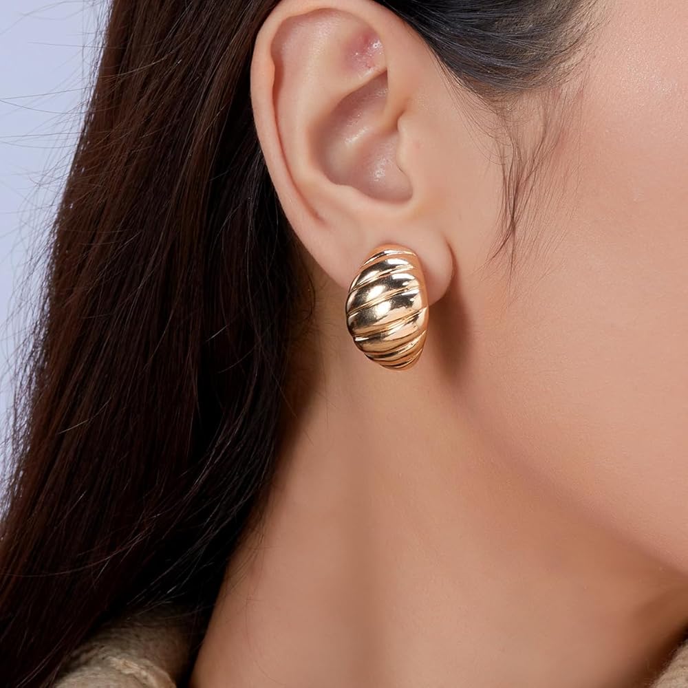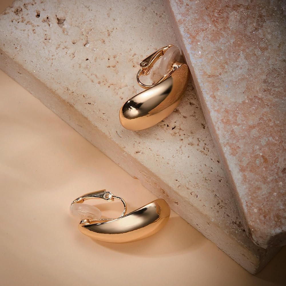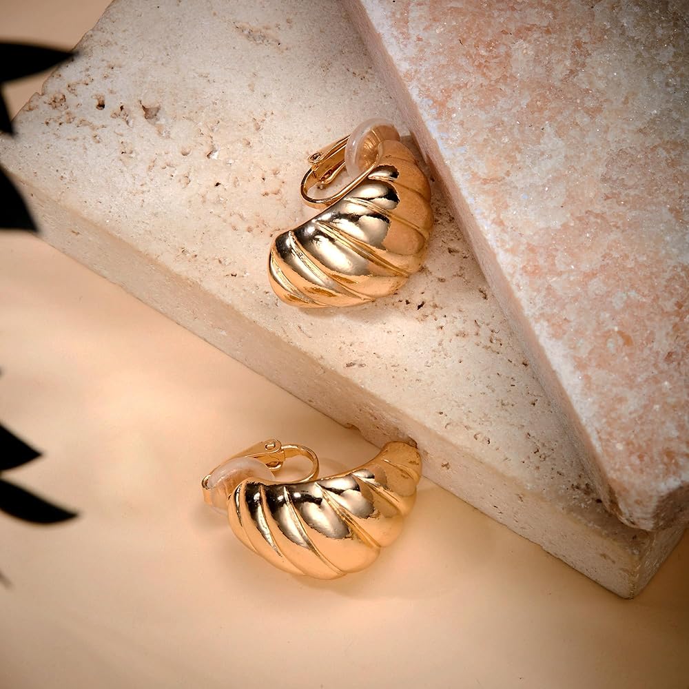 Gmai 2 أزواج الذهب هوب كليب على الأقراط للمرأة غير مثقوب الدمعة الكرواسون كليب على هوب أقراط للمرأة الفتيات الأقراط وهمية