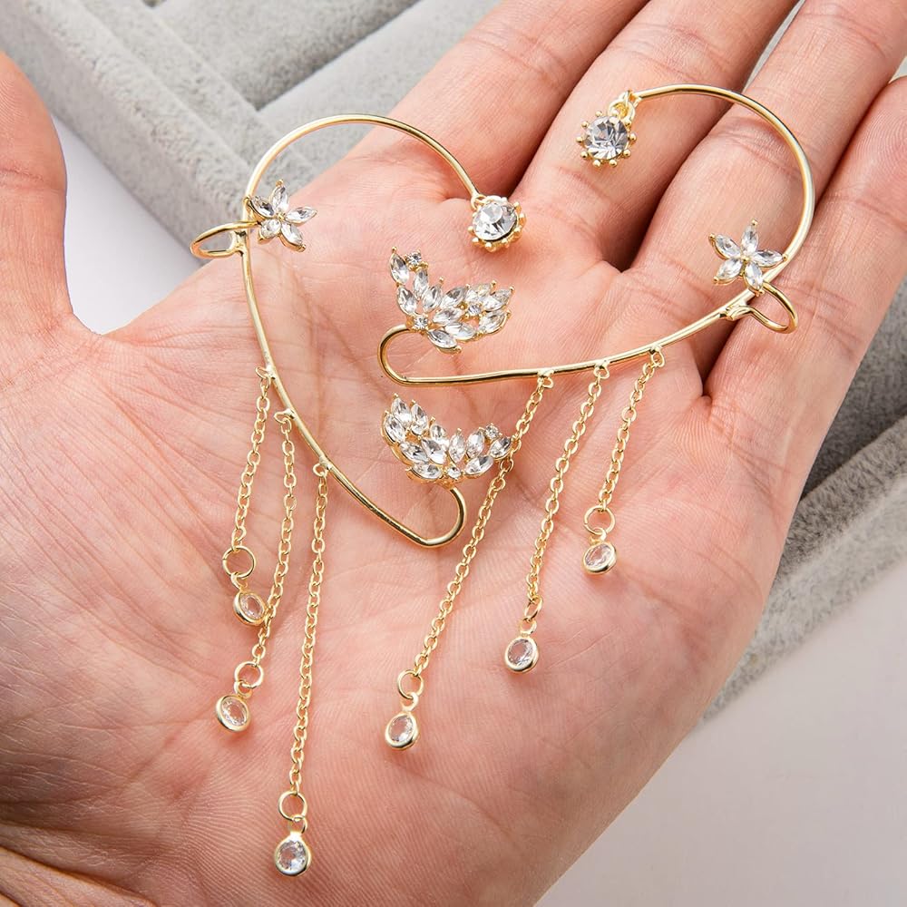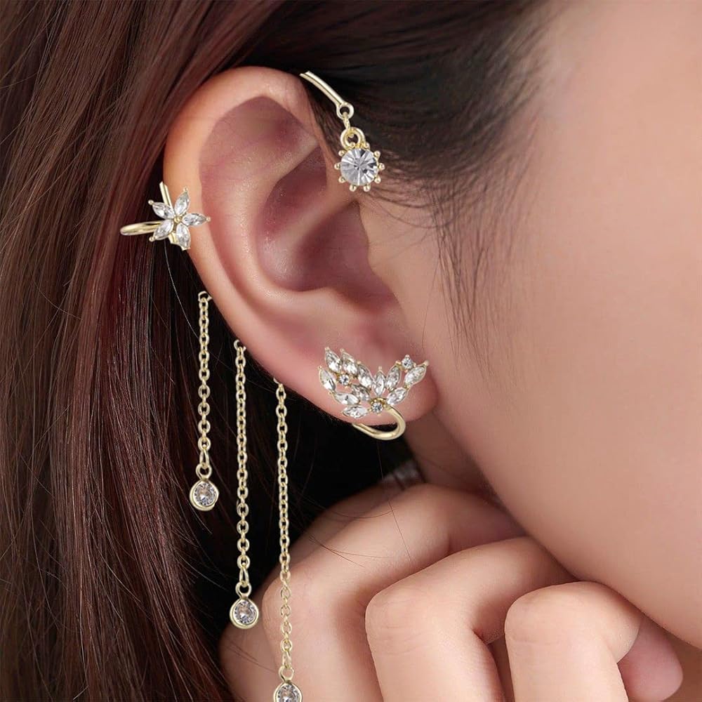 مجموعة أقراط الأذن - زوجان من مشابك الأذن غير المثقوبة في طلب واحد، زوج واحد من مشابك الأذن على شكل أوراق تشيكوسلوفاكيا، زوج واحد من مشابك الأذن المتدلية، مناسبة للنساء والفتيات للارتداء اليومي.