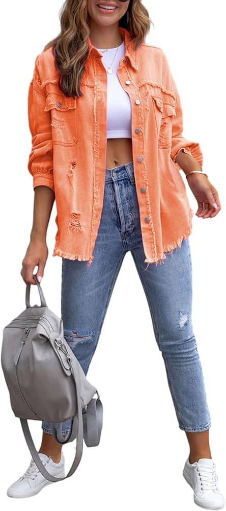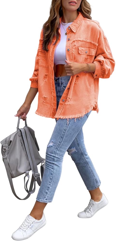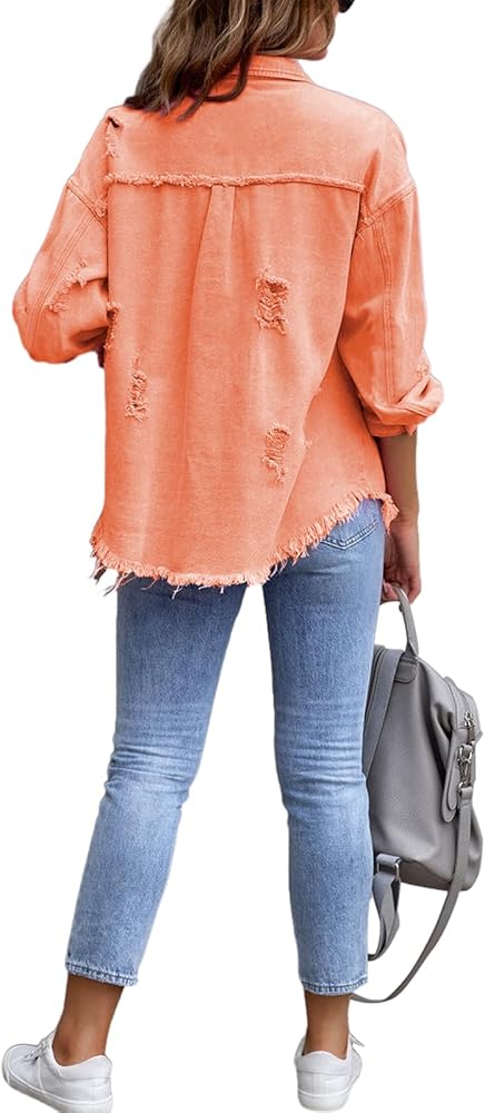 【نمط فريد】سترة من الدنيم الوردي الممزق العتيق للنساء، طراز مريح وصديق، ناعم ومريح للارتداء في الربيع والخريف والشتاء، سترة نسائية من الدنيم بأكمام طويلة، سترة جينز نسائية متعثرة، مثالية لتتناسب مع الجينز الضيق والفساتين، شورت أو سراويل ضيقة أو أحذية طويلة لمظهر عصري، تتميز سترة الجينز بألوان جريئة وزخرفة خام خاصة تظهر شخصيتك الفردية الجميلة والحيوية لجذب انتباه الجميع بسهولة
