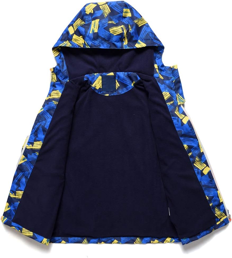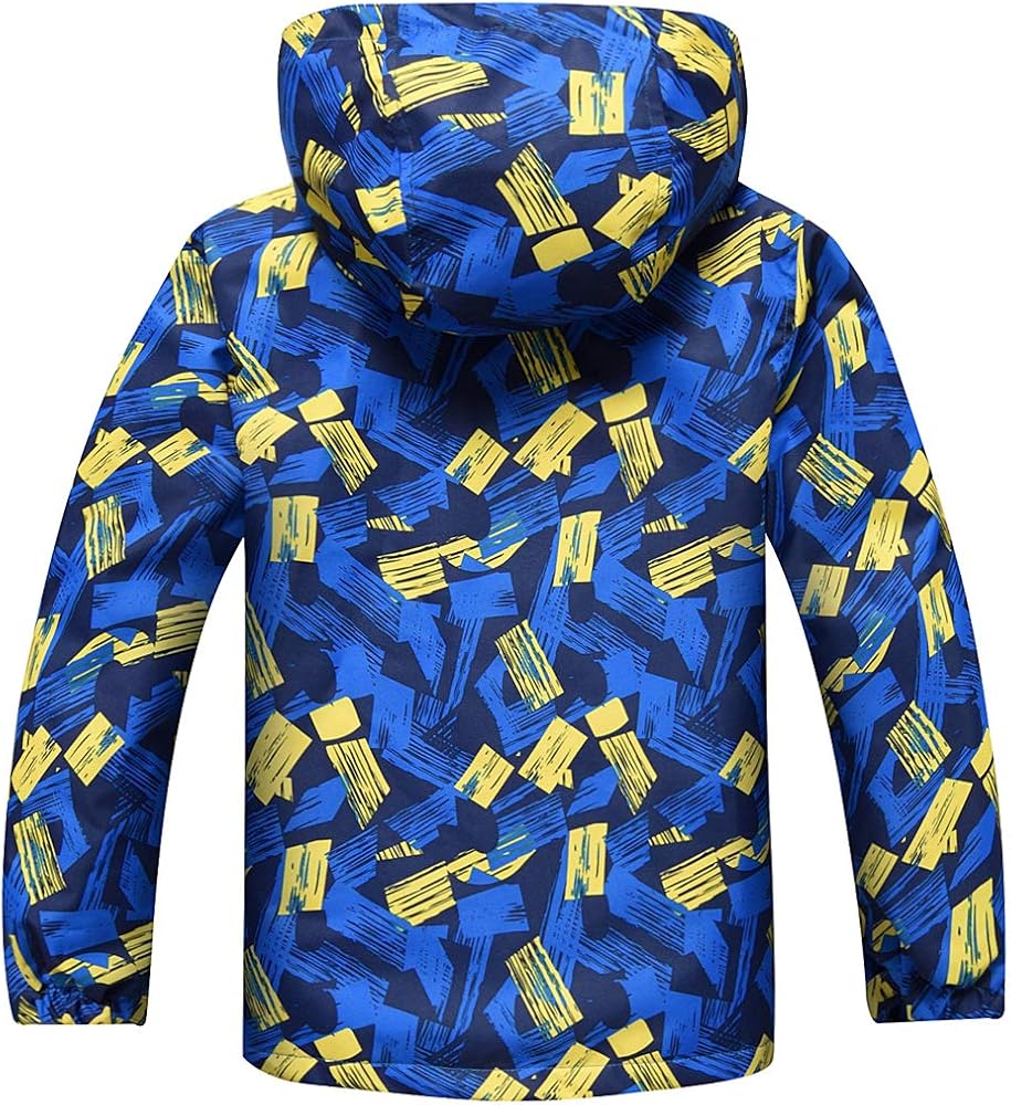 ACESTAR Spring Fall Little Boys Girls Rain Jacket Hooded Floral Fleece-Lined Lightweight Waterproof Windbreaker Jacket Outdoor Water Resistant Raincoats for Kids