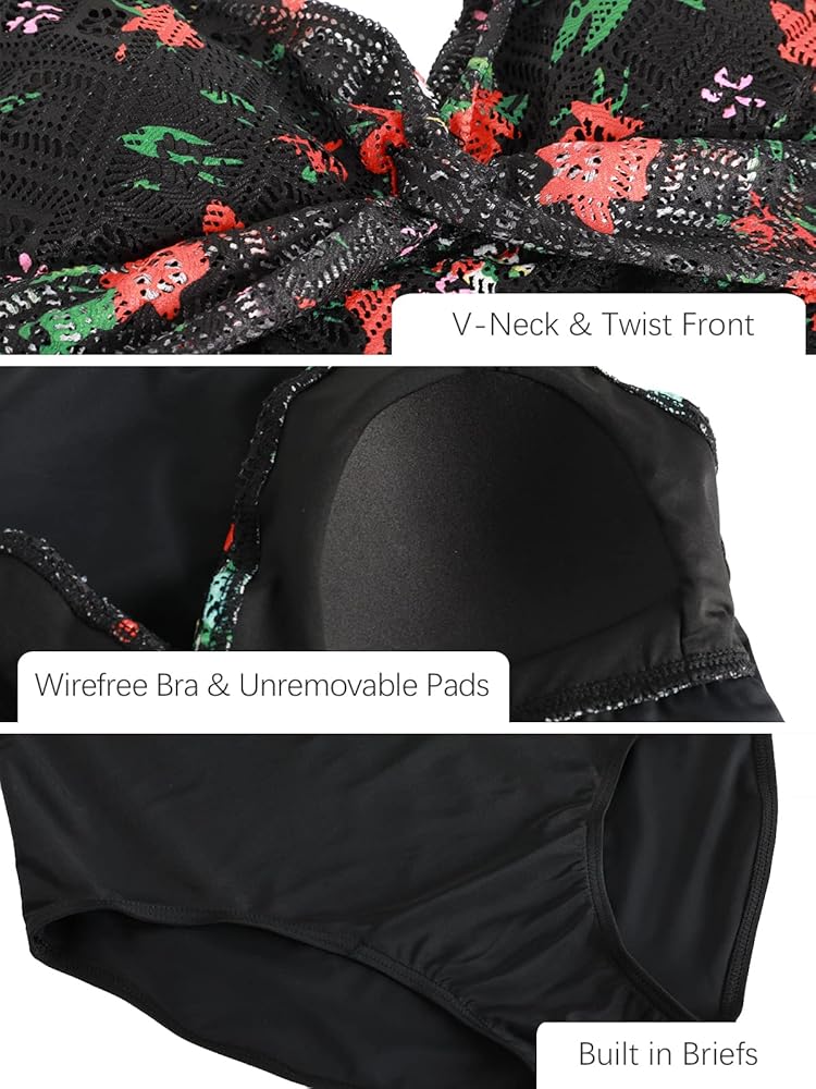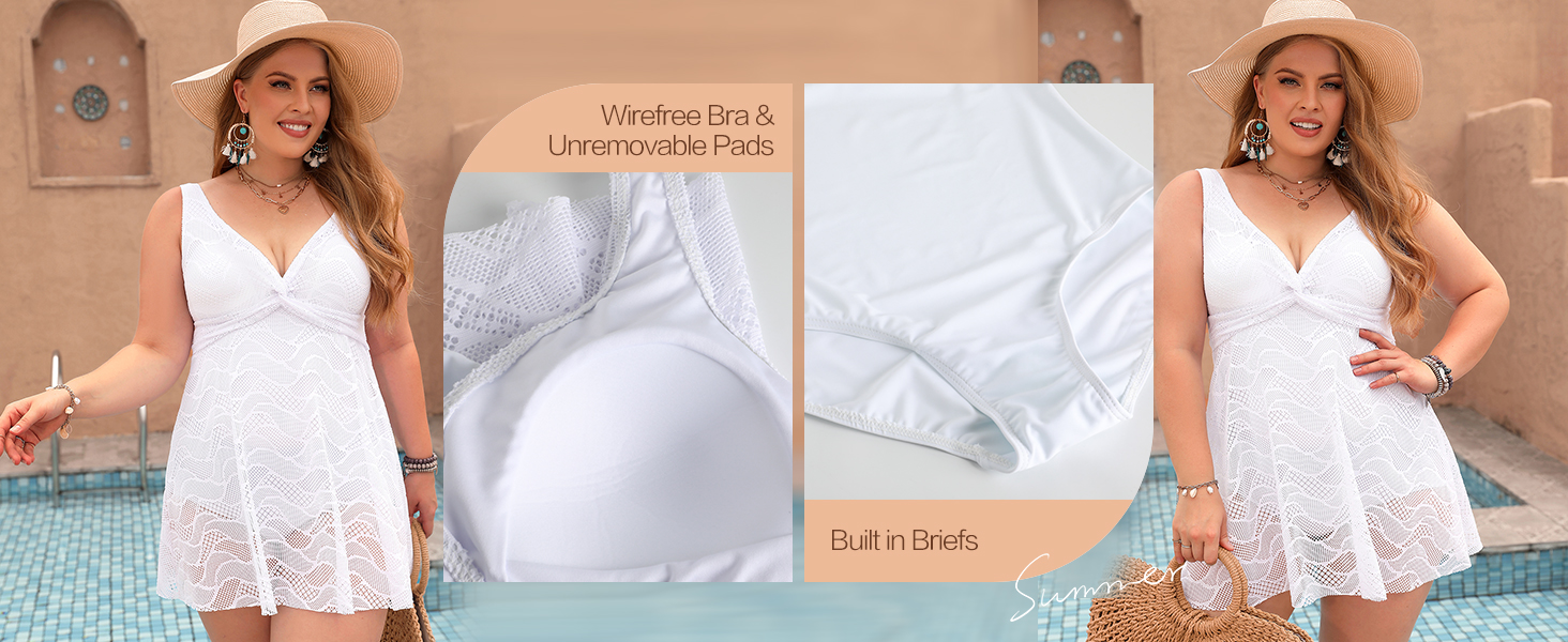 • وسادات ثابتة: فستان السباحة قطعة واحدة للنساء غير مزود بسلك داخلي، وحمالة صدر مبطنة ناعمة غير قابلة للإزالة تضمن دعمًا رائعًا، ويمكن للتنورة الكبيرة تغطية الأجزاء التي تريدها