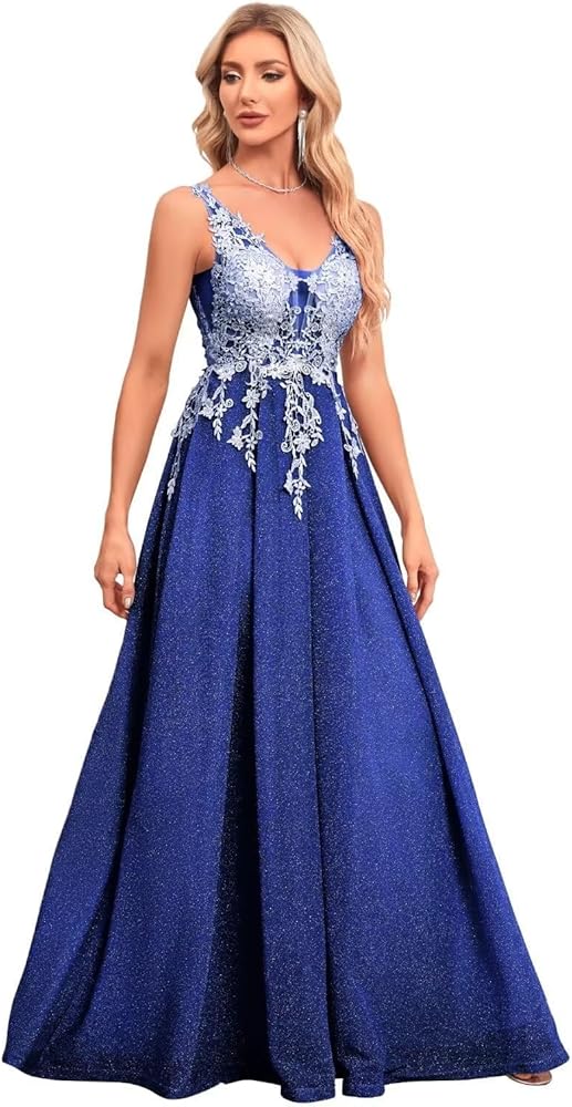 المزايا: فستان حفلة موسيقية برقبة على شكل حرف V مع جيوب، فساتين سهرة رسمية على شكل حرف A، لامع عالي الجودة، مزين بالدانتيل، بدون أكمام، خفيف الوزن وانسيابي، ناعم، صديق للبشرة، حمالة صدر مدمجة، طول يصل إلى الأرض
