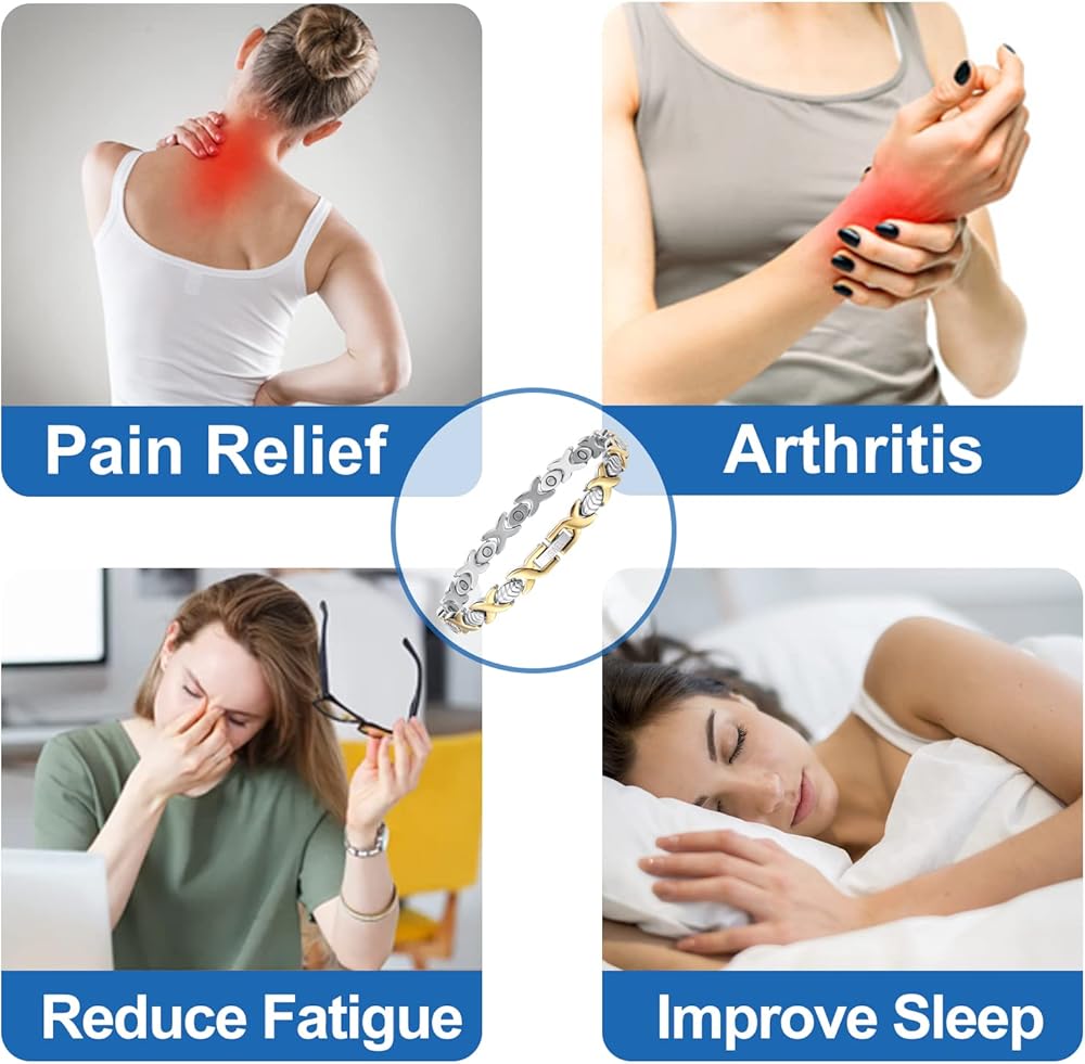 • 【 سوار العلاج المغناطيسي للسعادة للنساء】: هذا السوار المغناطيسي الفاخر للسيدات من USWEL بمغناطيس النيوديميوم الفسيفسائي (3000 غاوس لكل مغناطيس) للحصول على أقصى النتائج! نهاية السوار يمكن أن يحسن الدورة الدموية ويقلل الالتهاب ويعزز الاسترخاء.